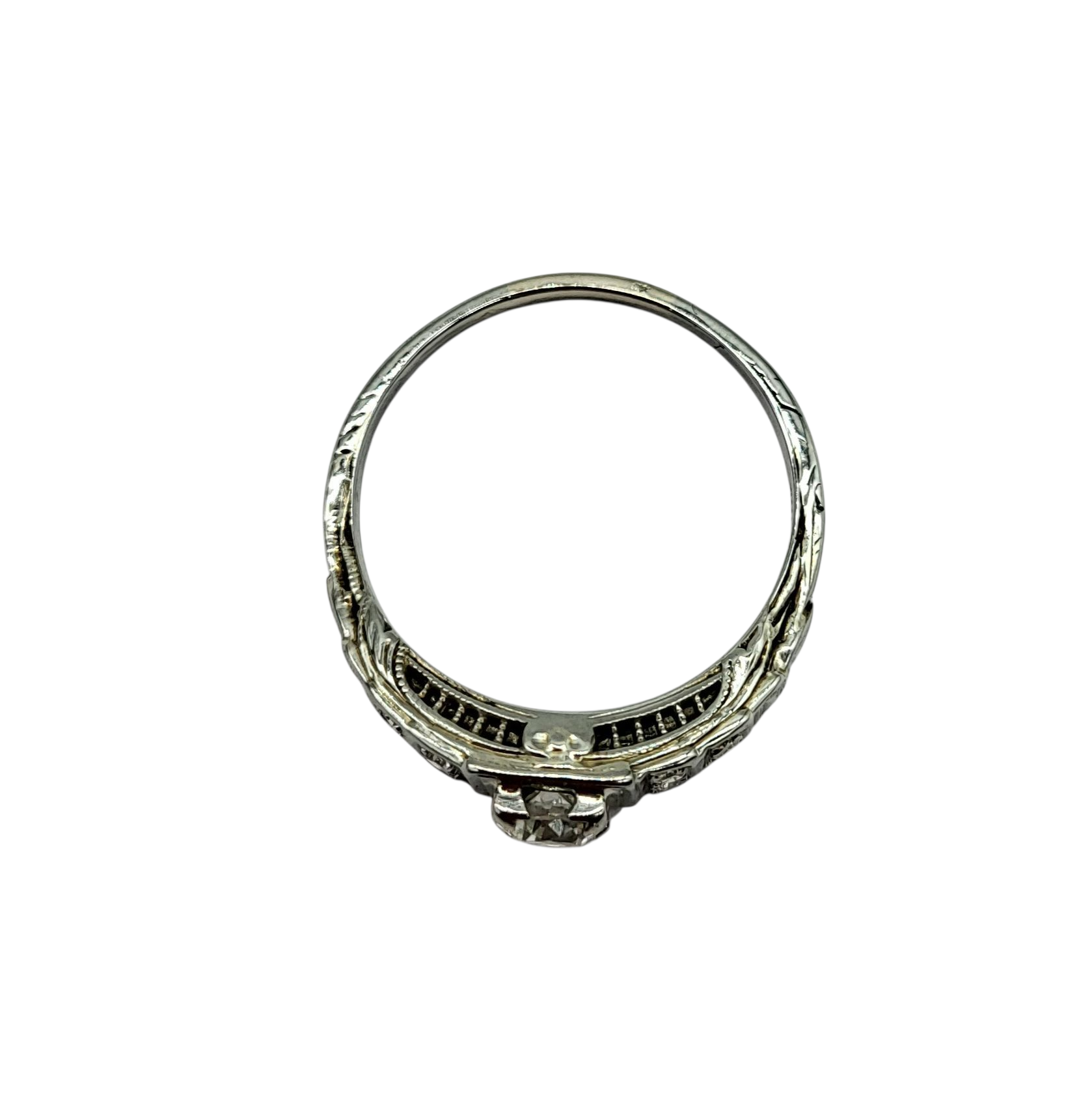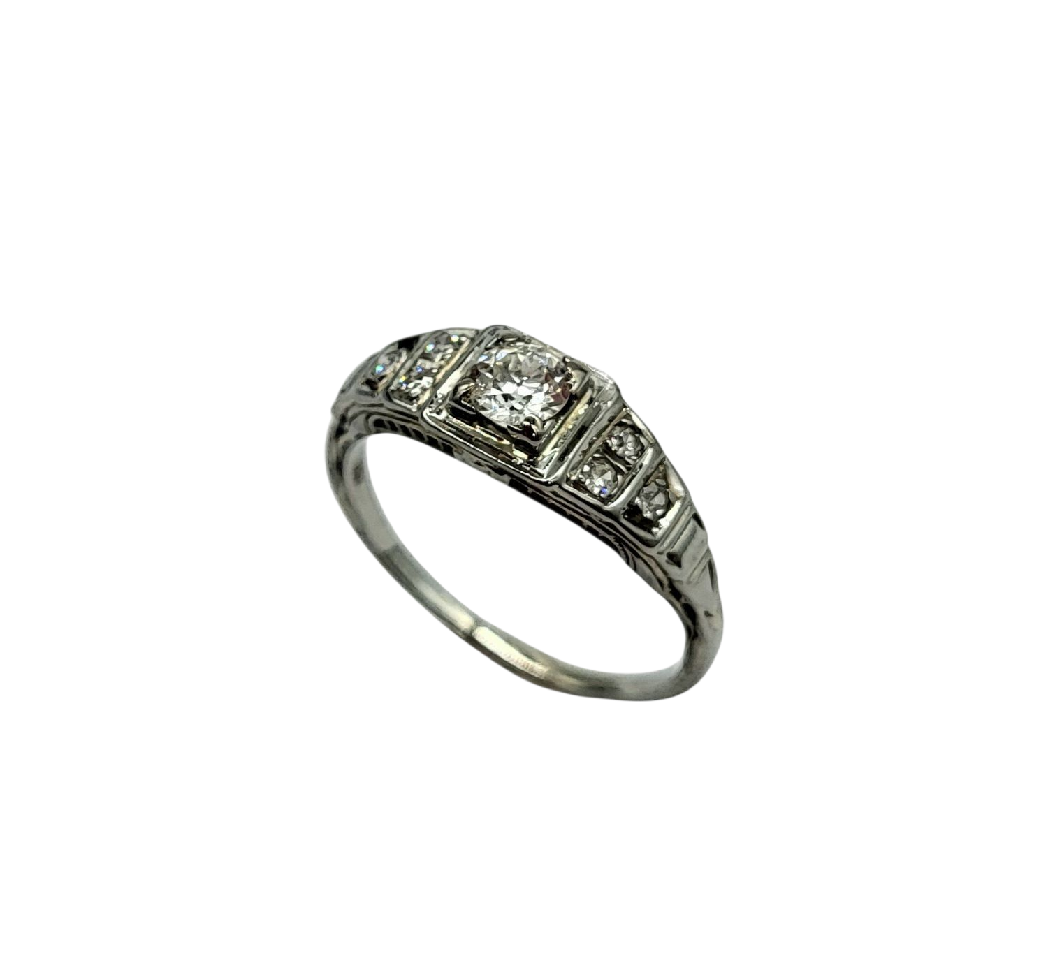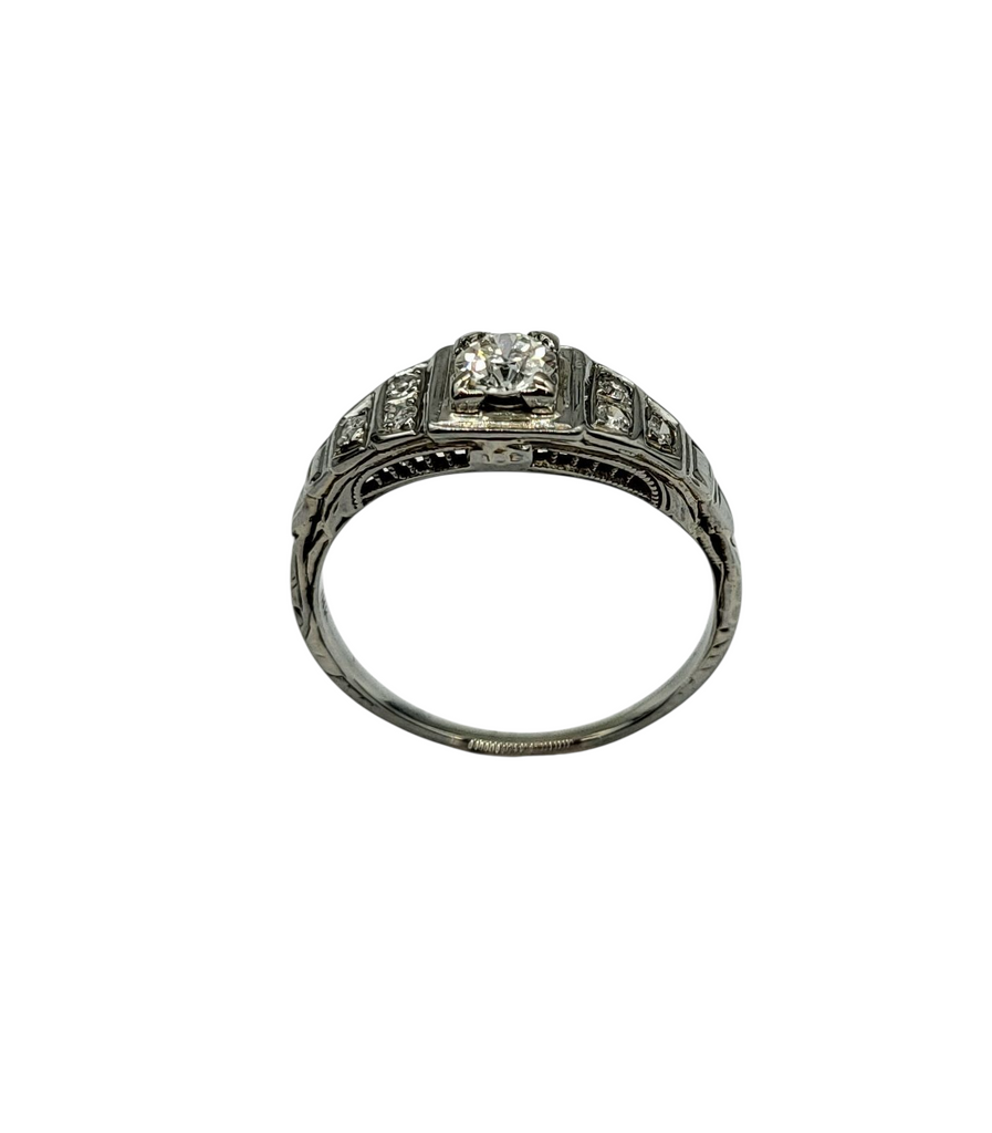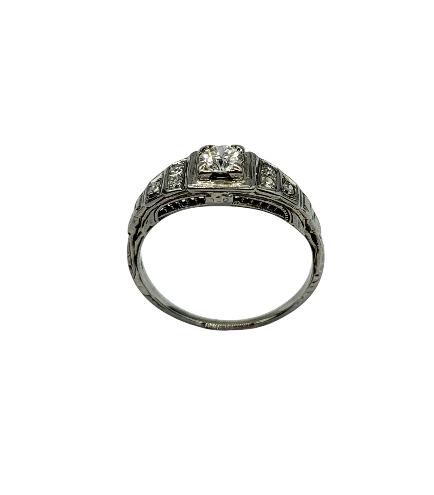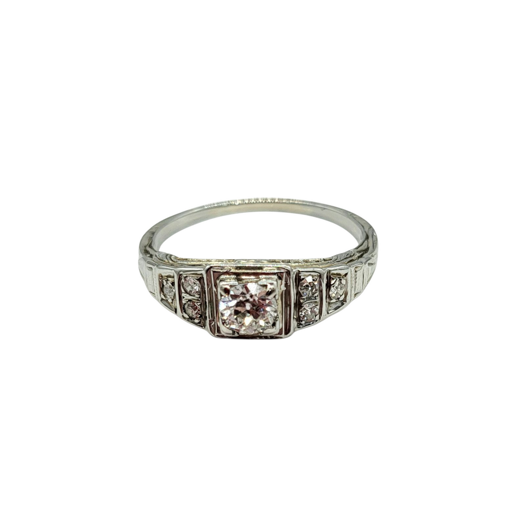 Experience the timeless elegance and luxury of our Vintage 1/2 Carat Total Weight Diamond Ring. Crafted with 18 karat white gold, this ring features a stunning 1/2 carat natural diamond in a classic step design. Elevate your style and make a statement with this exquisite piece.