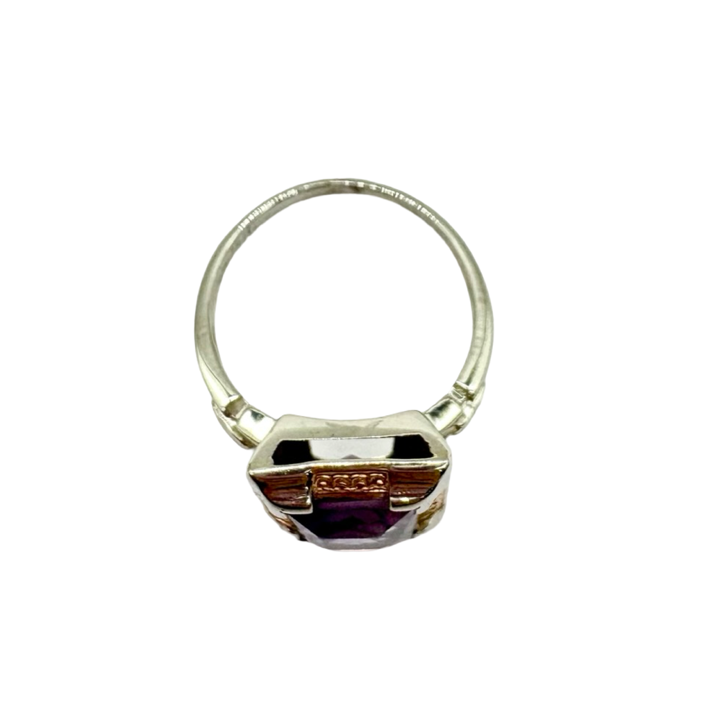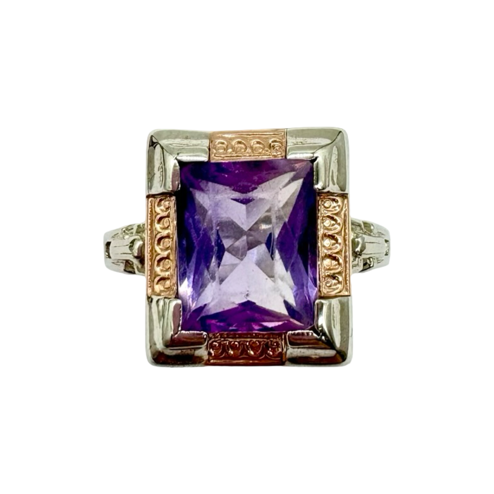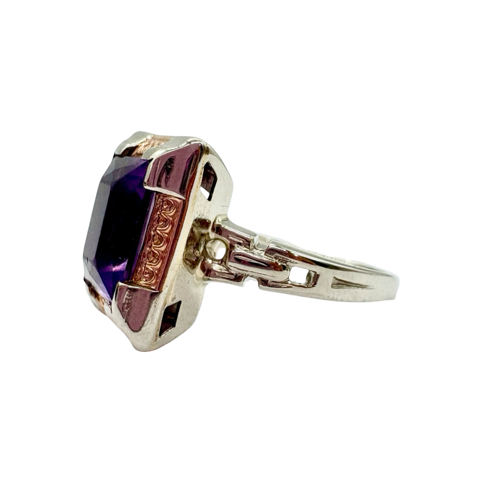 Vintage 14K White & Rose Gold Amethyst Framed Cutout Ring