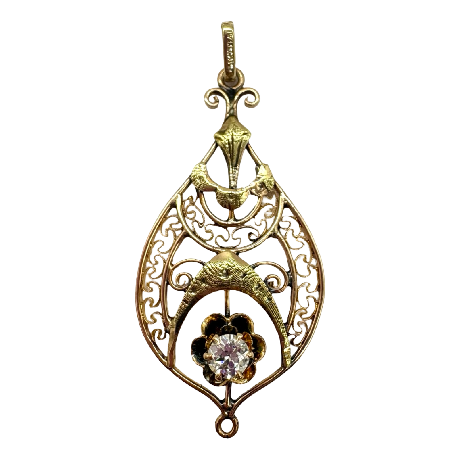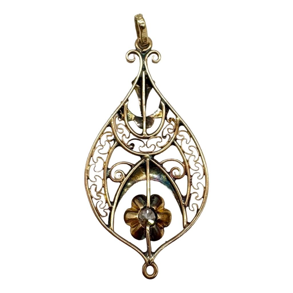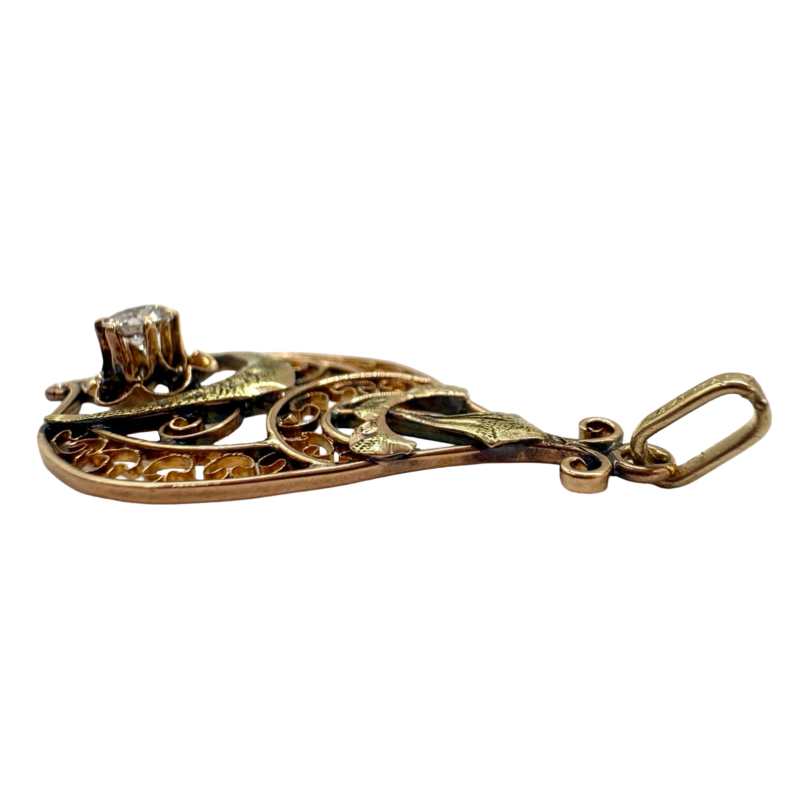 Vintage 14K Yellow & Rose Gold 15PT Diamond Filigree Pendant