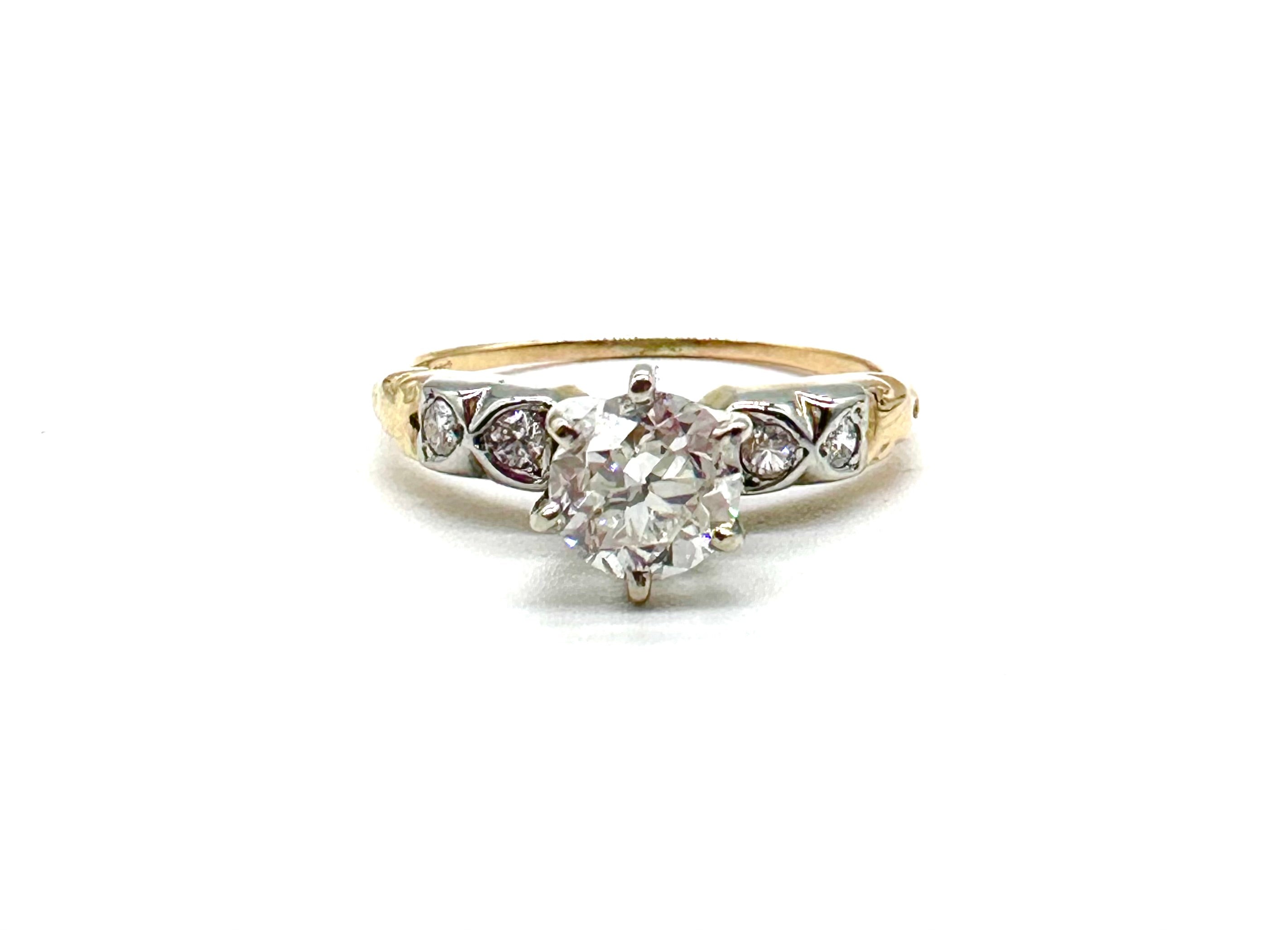 This beautiful Vintage diamond Tiffany ring is set with one carat of diamonds in 14 karat yellow and white gold.