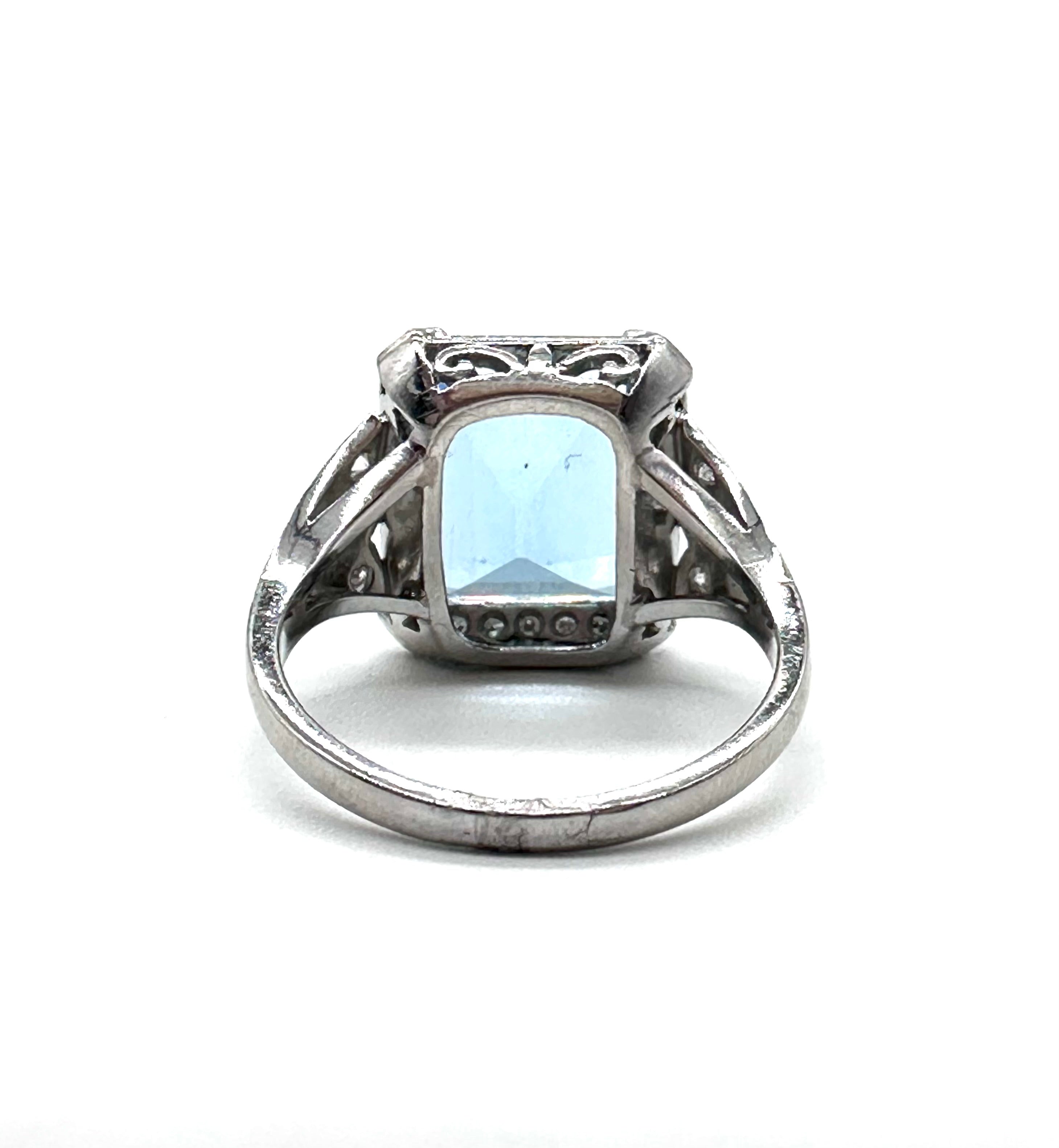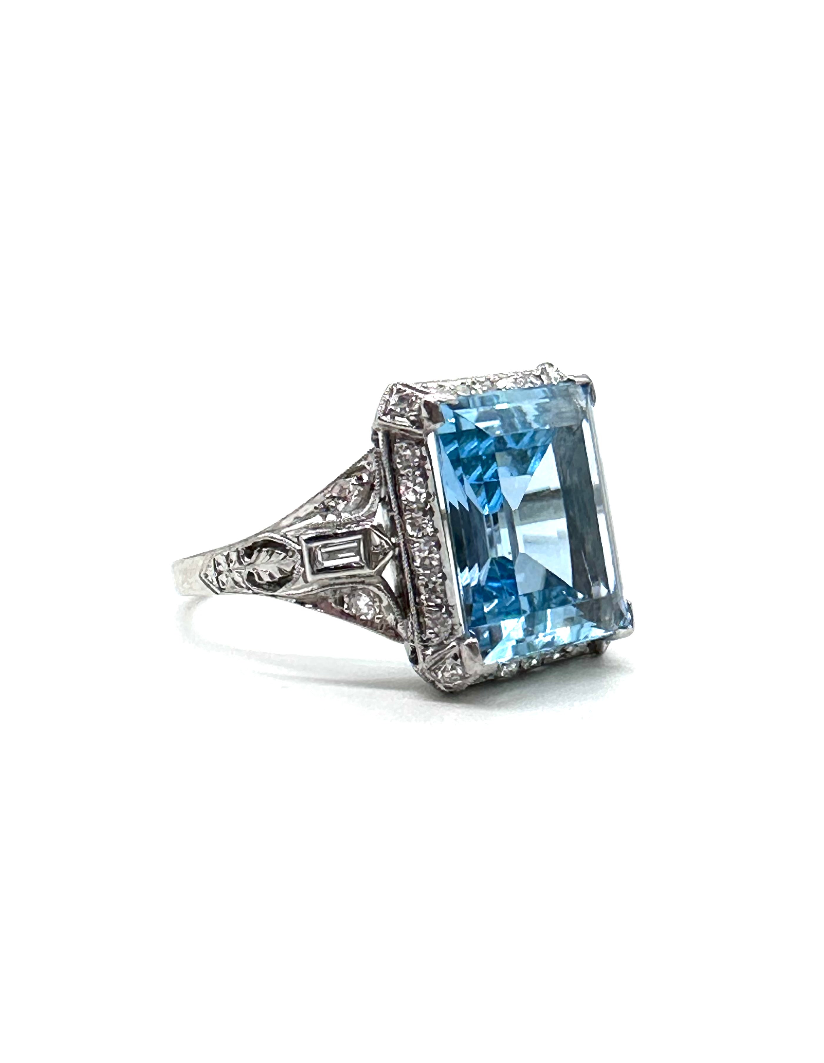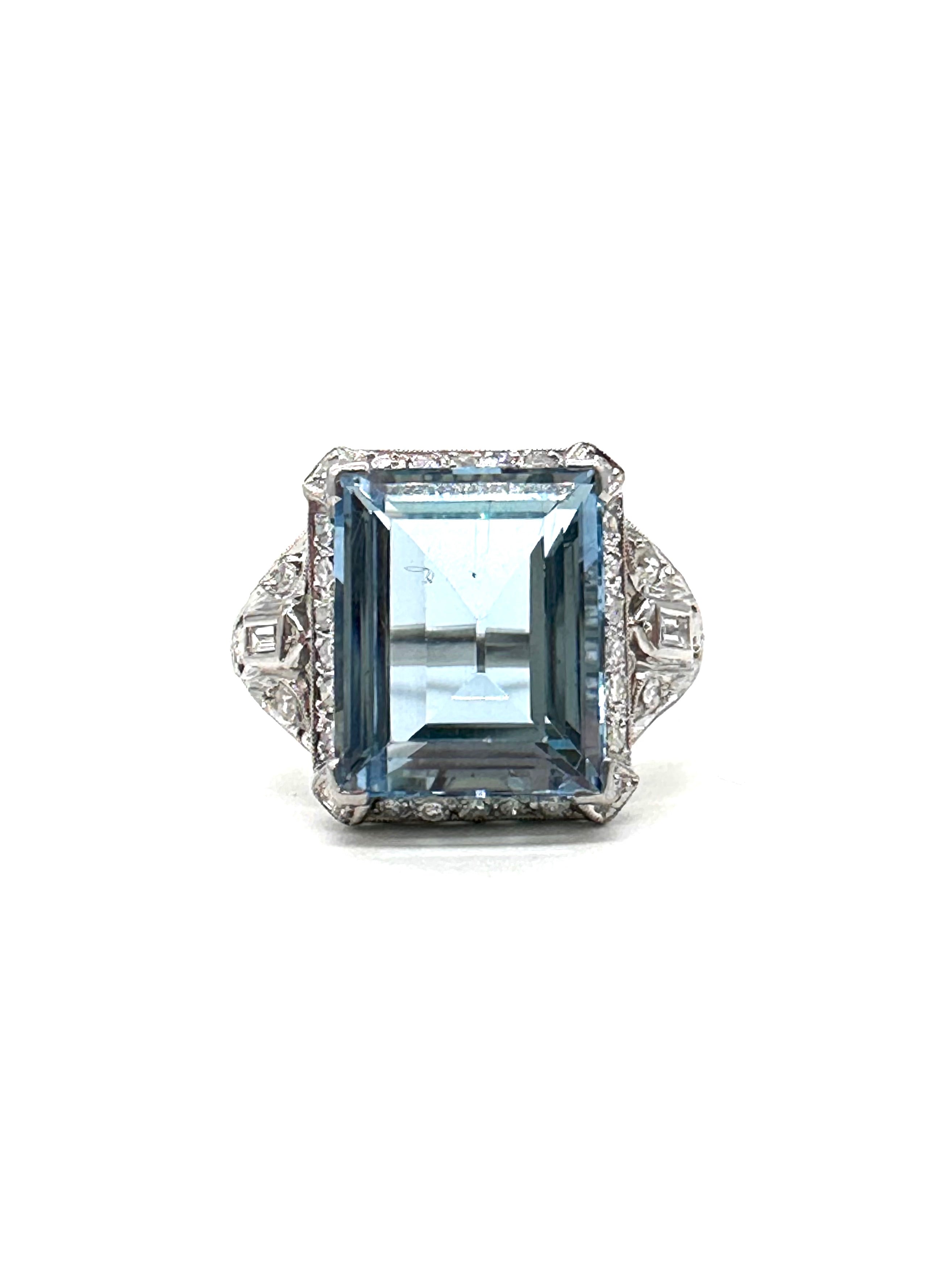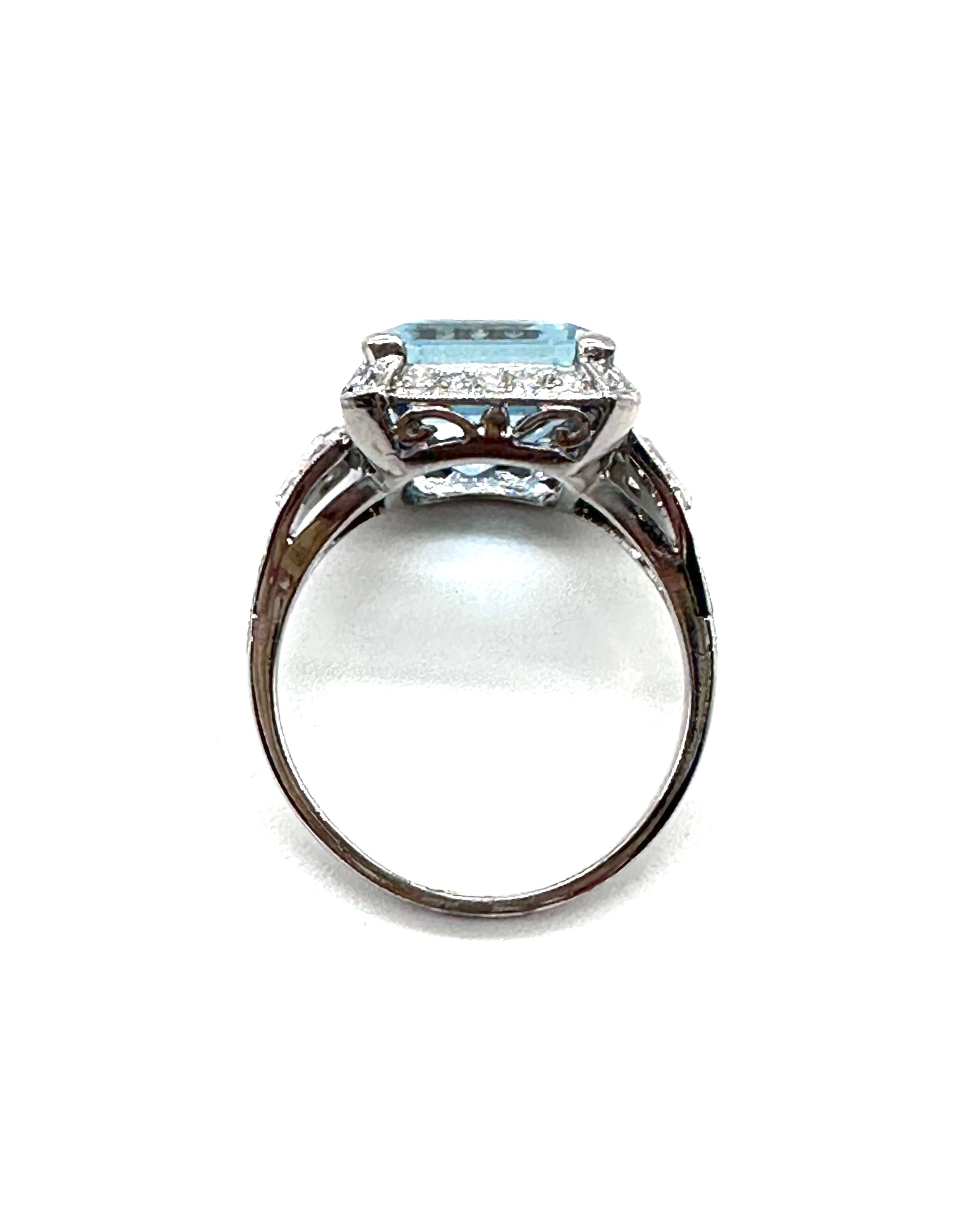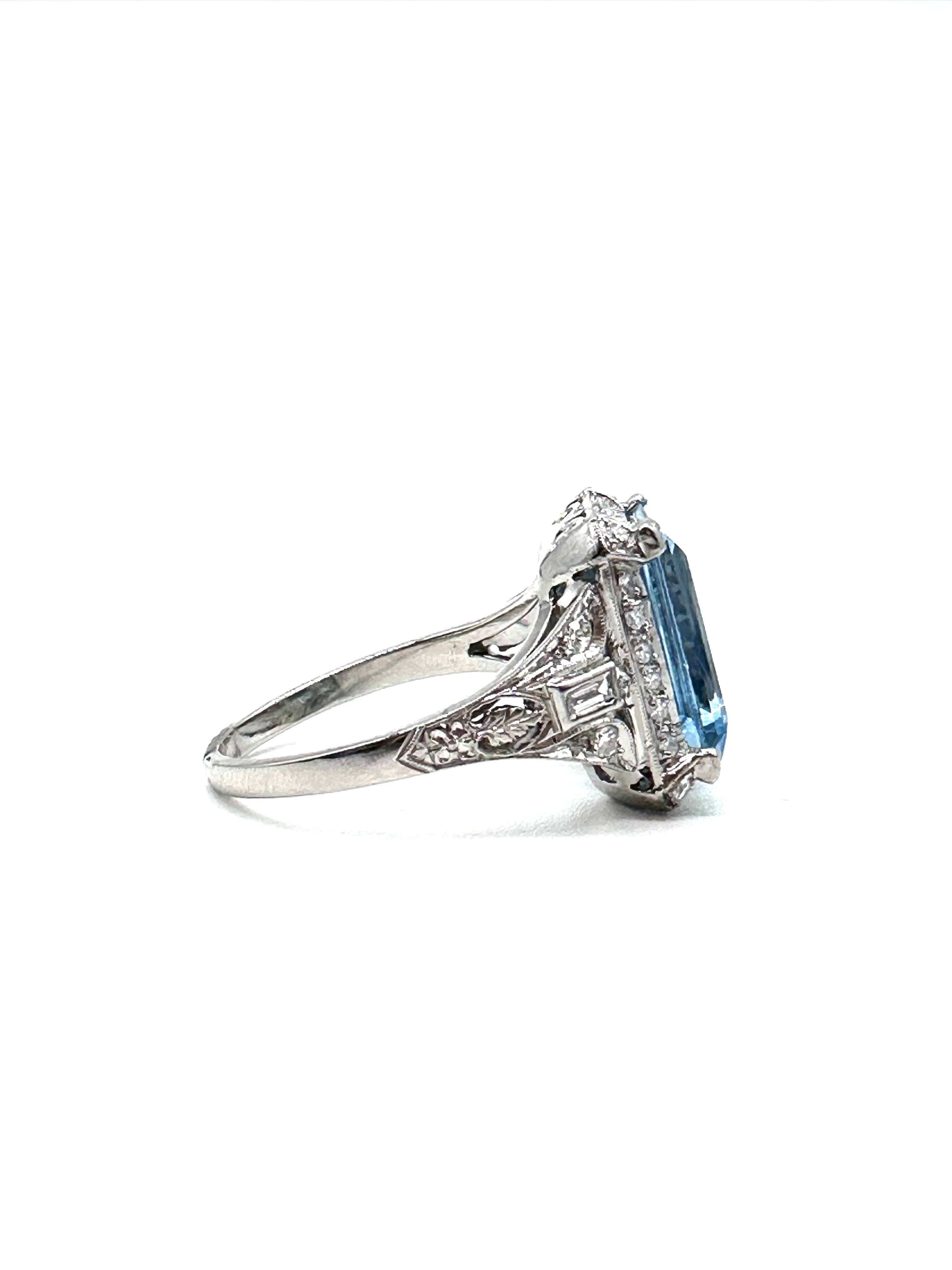 Vintage Emerald Cut Aquamarine and Diamond Ring