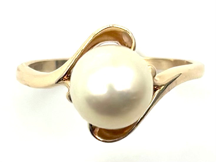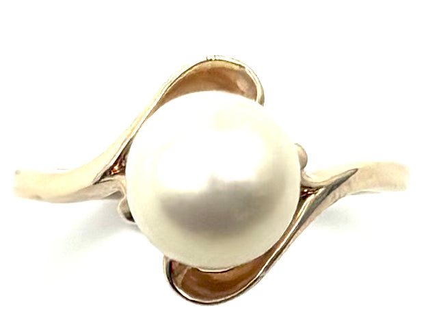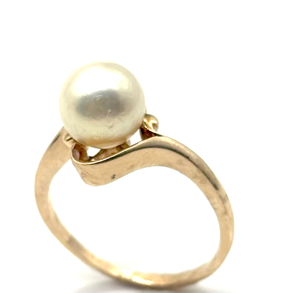 14K Yellow Gold Cutout Bypass Ring with Pearl – Size 7