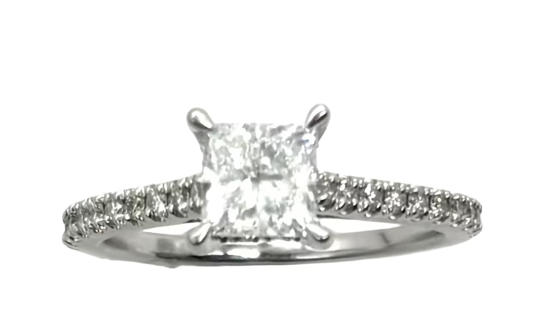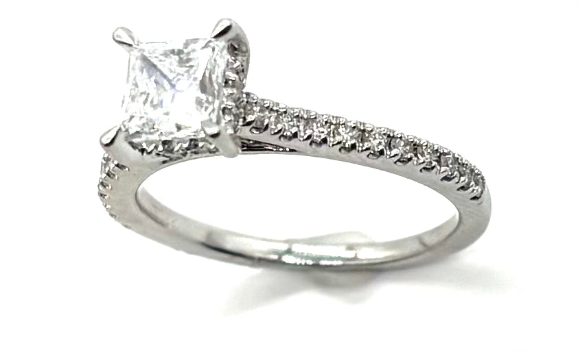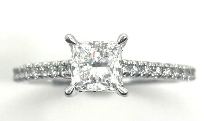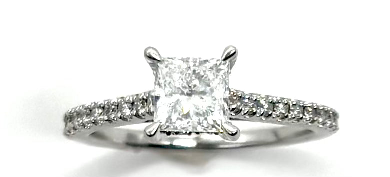 1.25ctw Lab Grown Square Cut Cathedral Ring- 14k White Gold