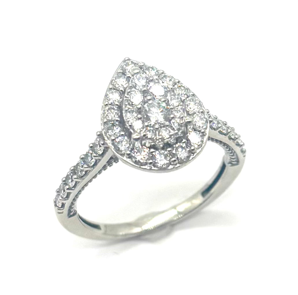 ✨ Elegant and timeless, this pre-owned pear halo cathedral ring is a dazzling statement of sophistication.