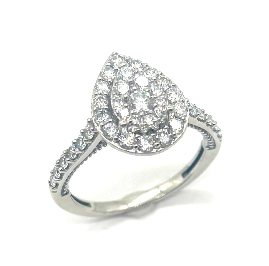 10k White Gold Pear Halo Cathedral Ring- 1CTW Lab Diamonds