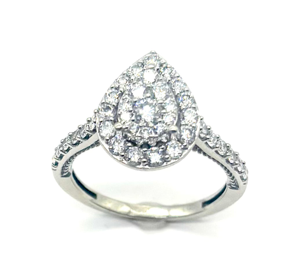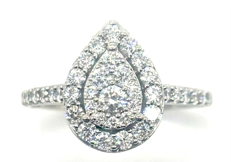10K White Gold Pear Halo Cathedral Ring – 1CTW Lab Diamonds (Size 7)