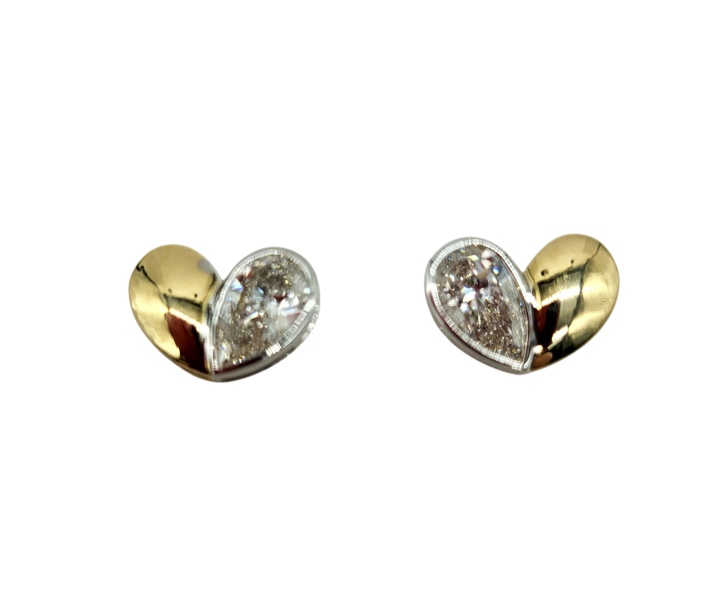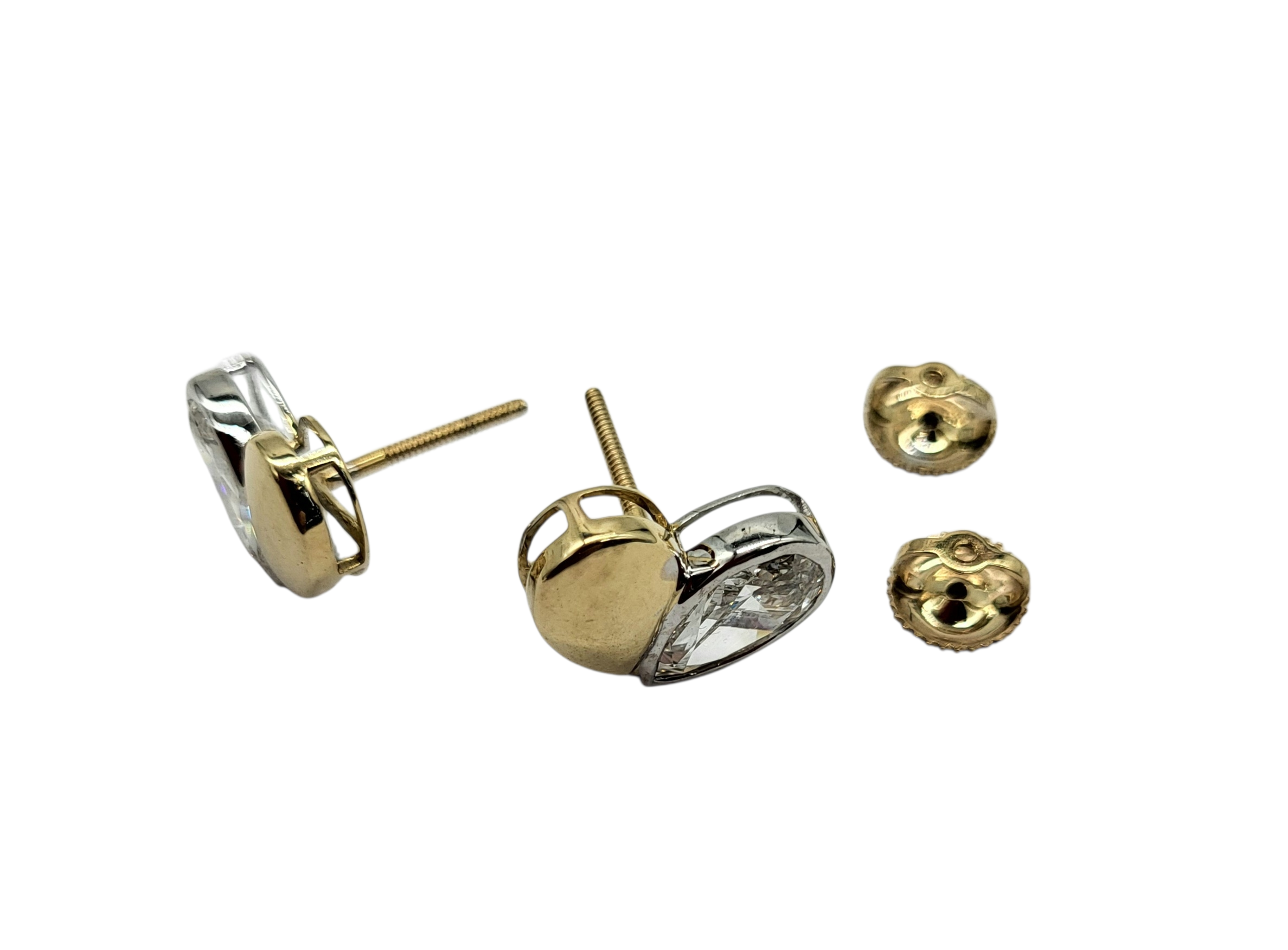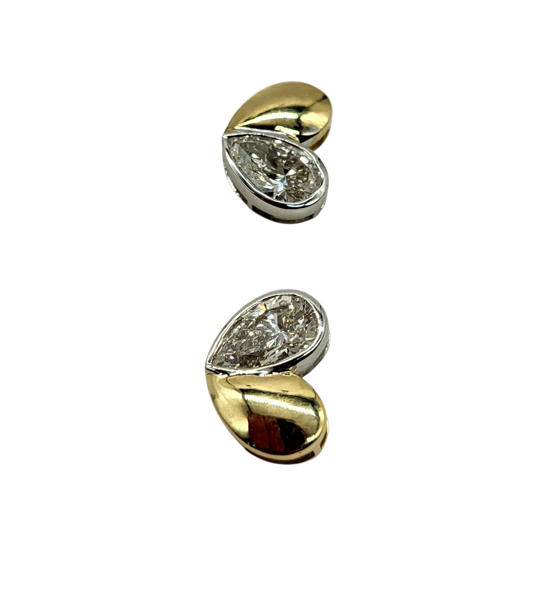 These 2.57 carat total weight pear-shaped heart lab diamond earrings feature a sophisticated design crafted from 14 karat yellow and white gold. Lab-grown diamonds offer an ethical and sustainable alternative, while their unique shape enhances brilliance and visual appeal, making these earrings a valuable addition to any collection.