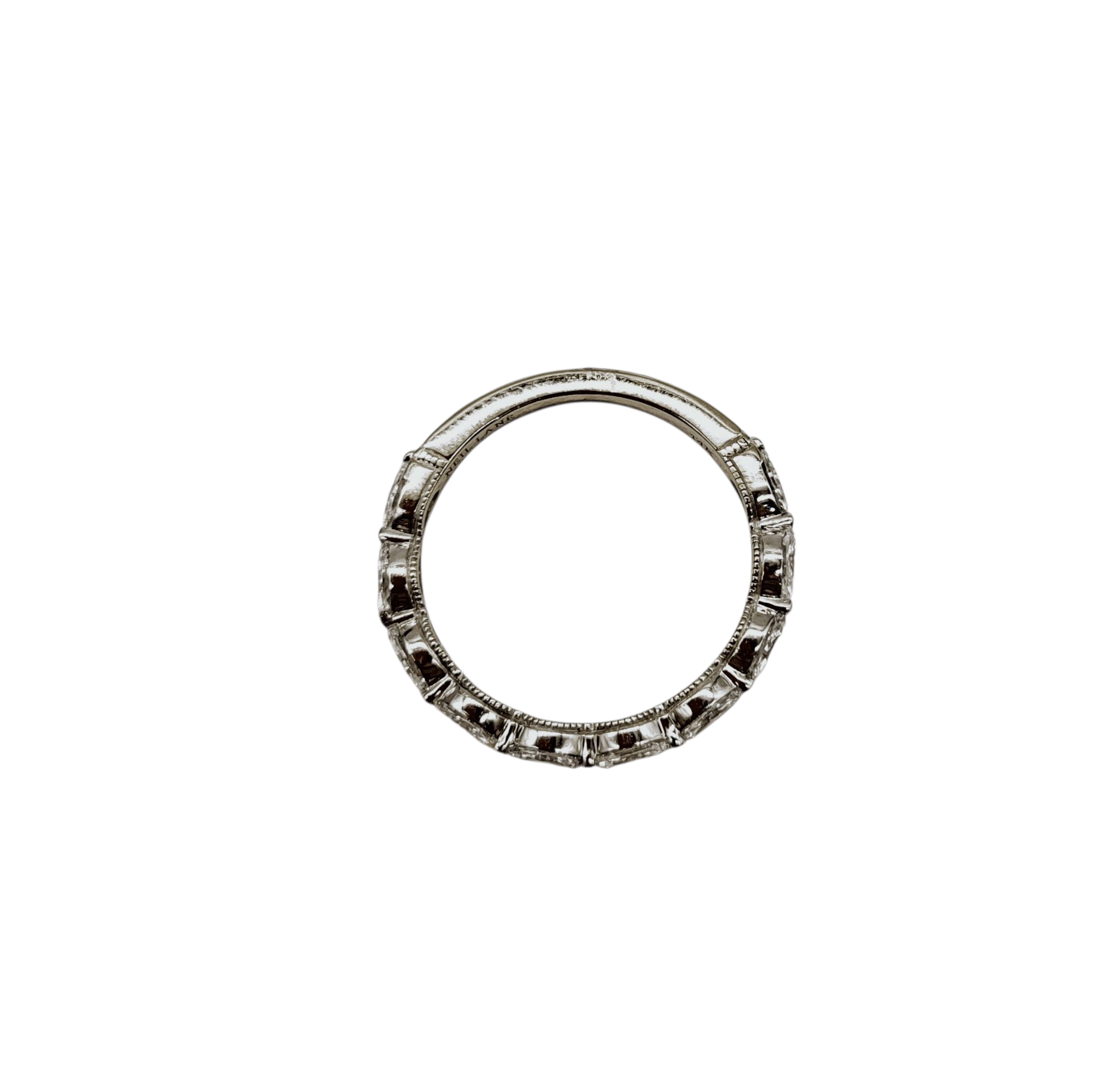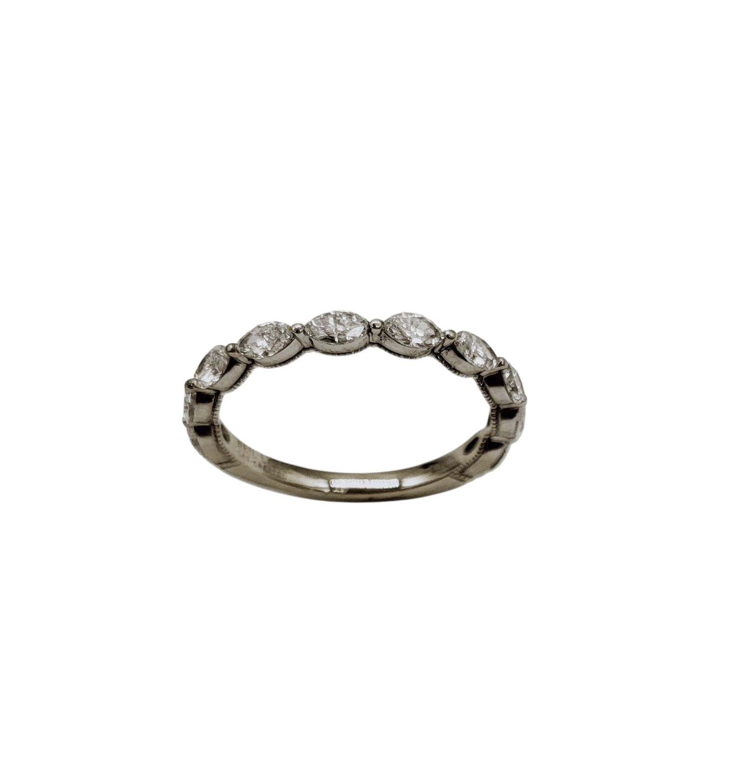Expertly designed by Neil Lane, a renowned designer in the industry, this 3/4 carat lab grown diamond band features stunning marquise cut diamonds in a unique scalloped design. Made with 14 karat white gold, this band is a true statement of elegance and sophistication.