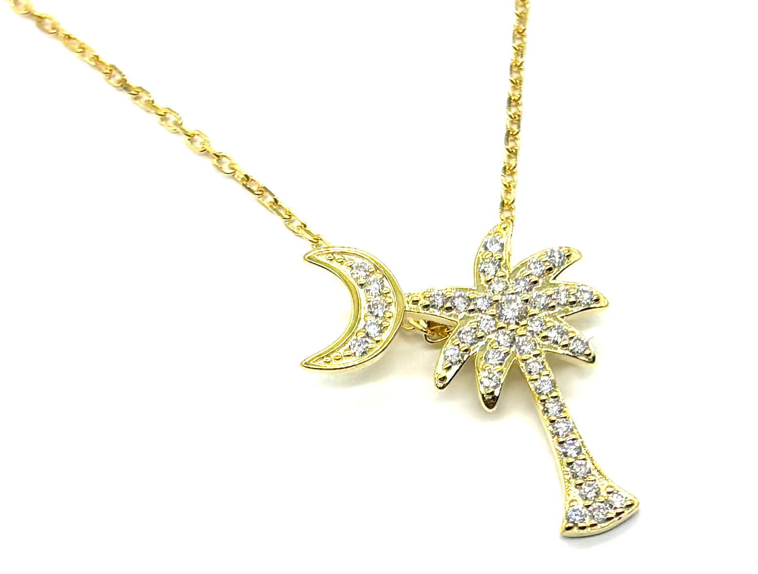 Add a touch of Southern charm and sparkle to your collection with this stunning Palmetto Tree necklace. Crafted in sterling silver with a rich gold-plated finish, this piece beautifully blends elegance with coastal-inspired style.