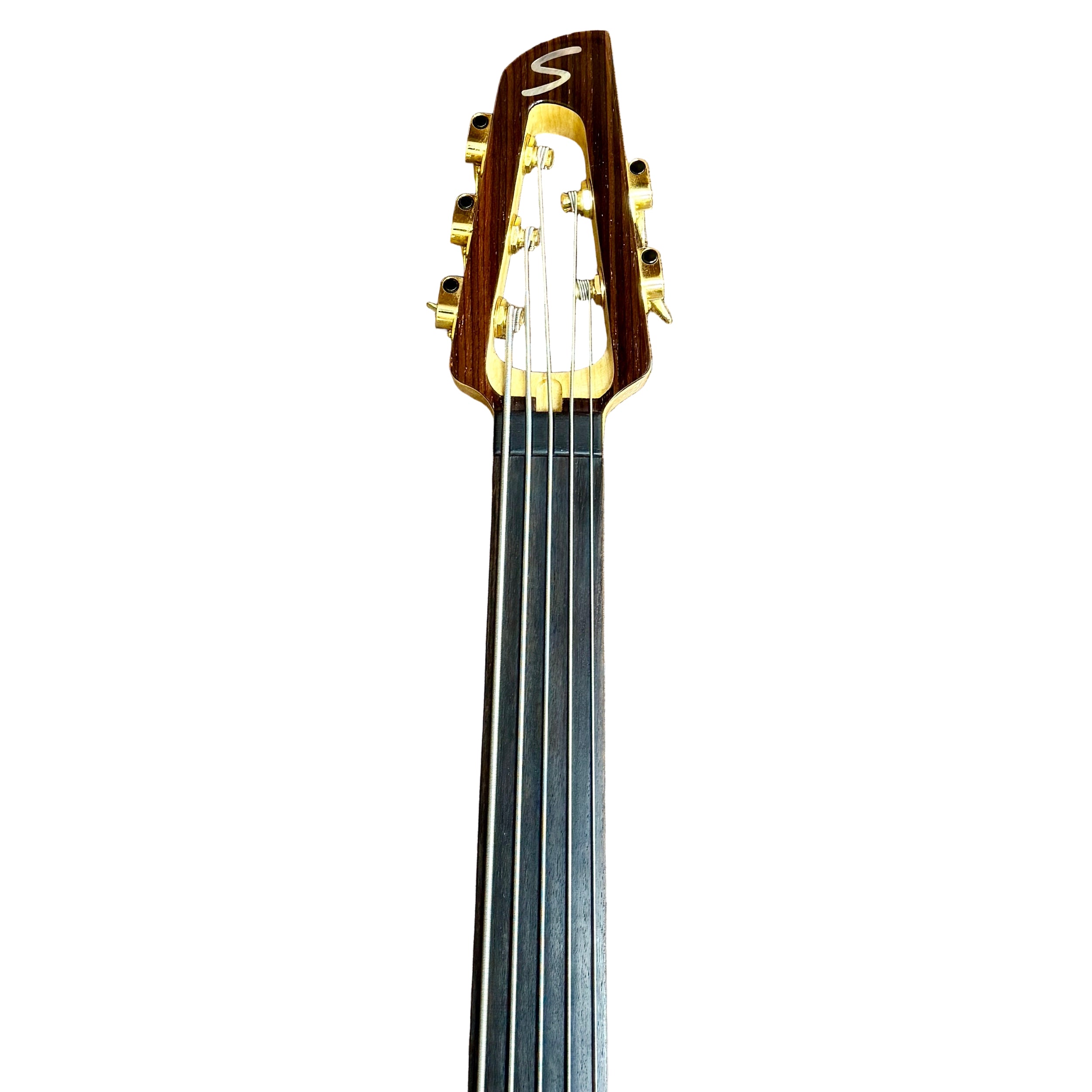 Rosewood fingerboard with 24 frets and standard 34″ scale length.