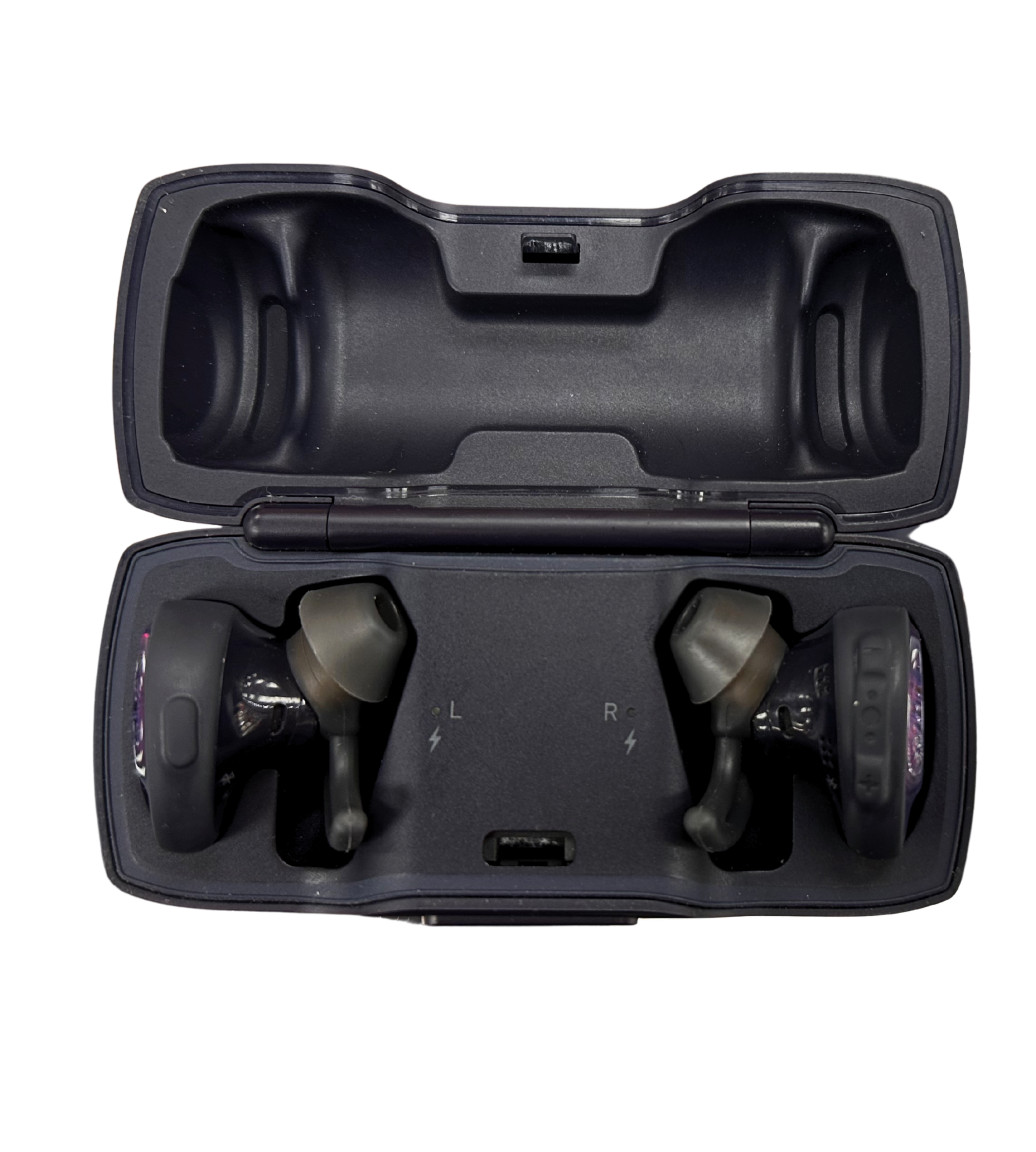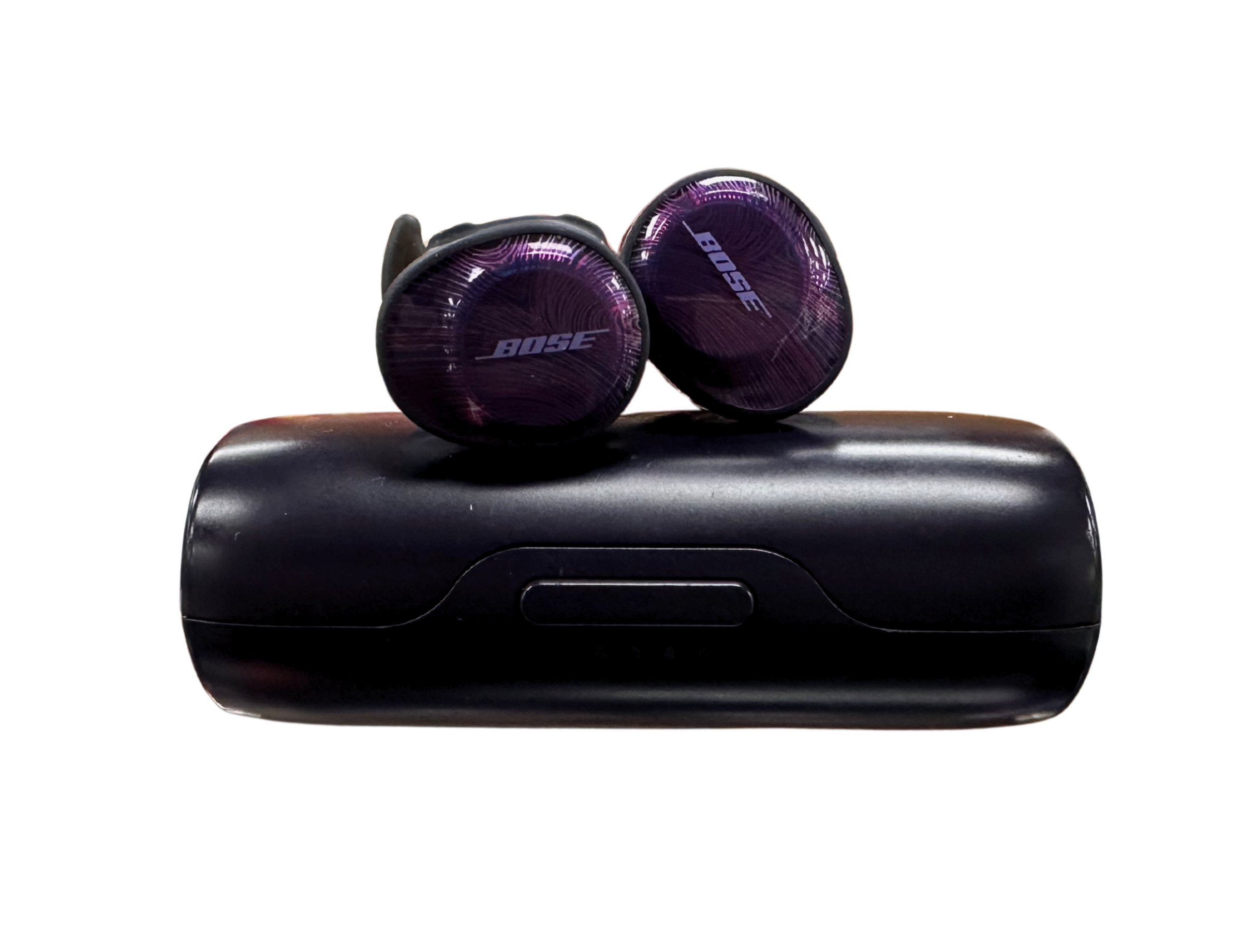 Experience high-performance sound with the Bose SoundSport Wireless Earbuds, engineered for powerful audio and a comfortable, stay-put fit. These earbuds feature a sleek purple finish and come with their original Bose charging case for convenient storage and power on the go. Designed to keep up with your workouts and everyday use, they deliver deep bass, clear highs, and a reliable Bluetooth connection.