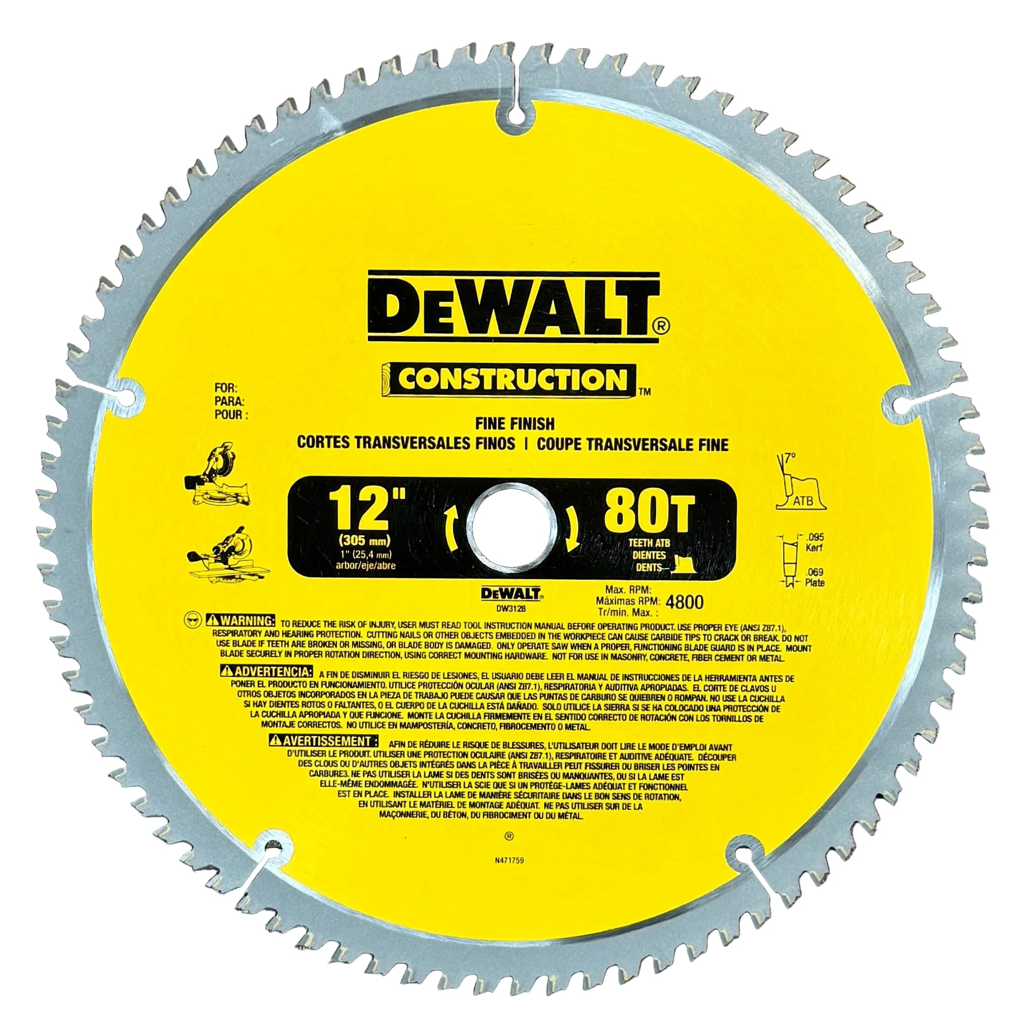 DeWalt 12" 80T Construction Miter Saw Blade (DW3128)