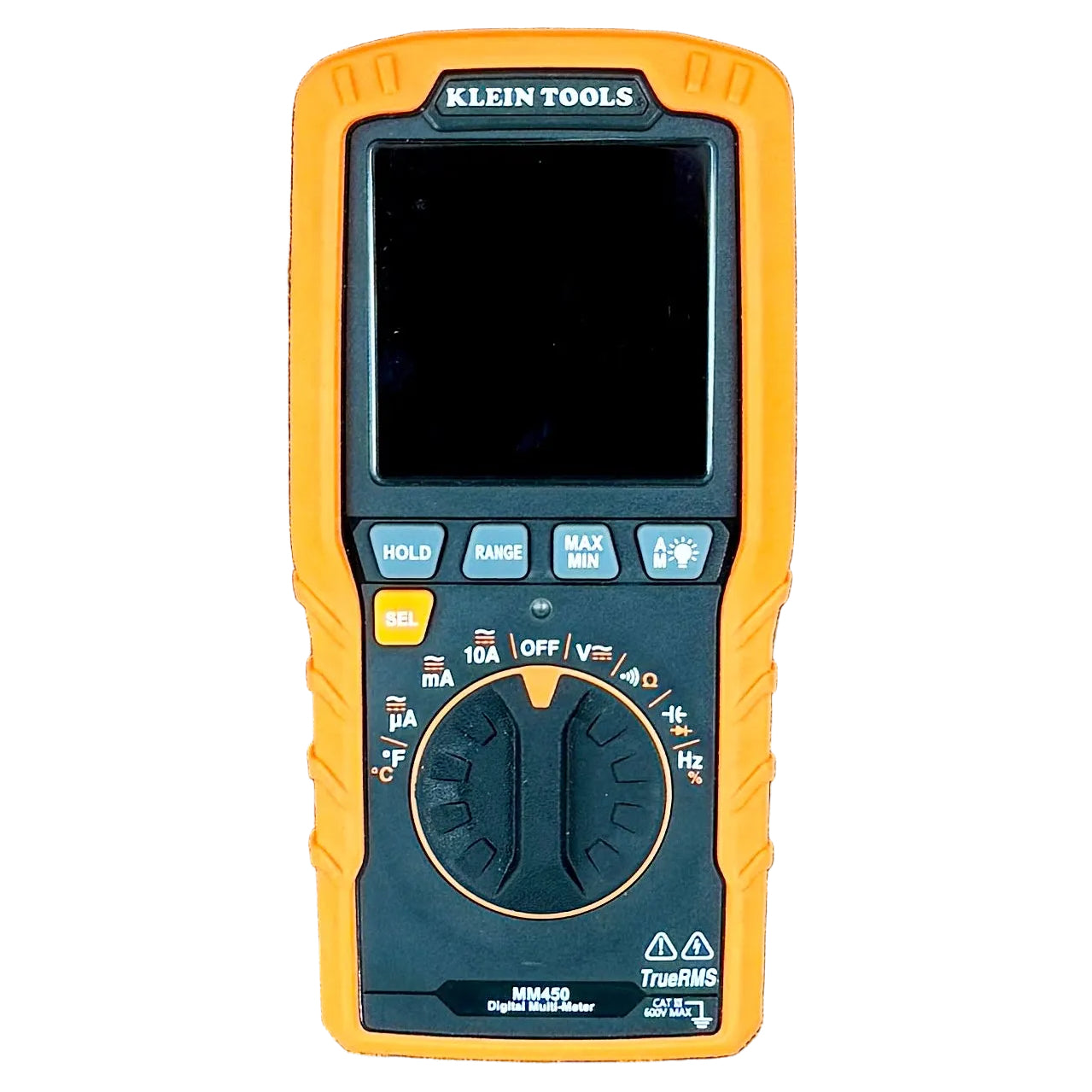 The KLEIN TOOLS MM450 600V TRMS Auto‑Ranging Slim Digital Multimeter w/ Case delivers accurate, user‑friendly electrical measurement and reliable performance in a compact, durable design. Built for professionals and DIYers alike, this digital multimeter offers precise TRMS readings and a convenient slim form factor—perfect for troubleshooting and testing electrical systems with confidence.