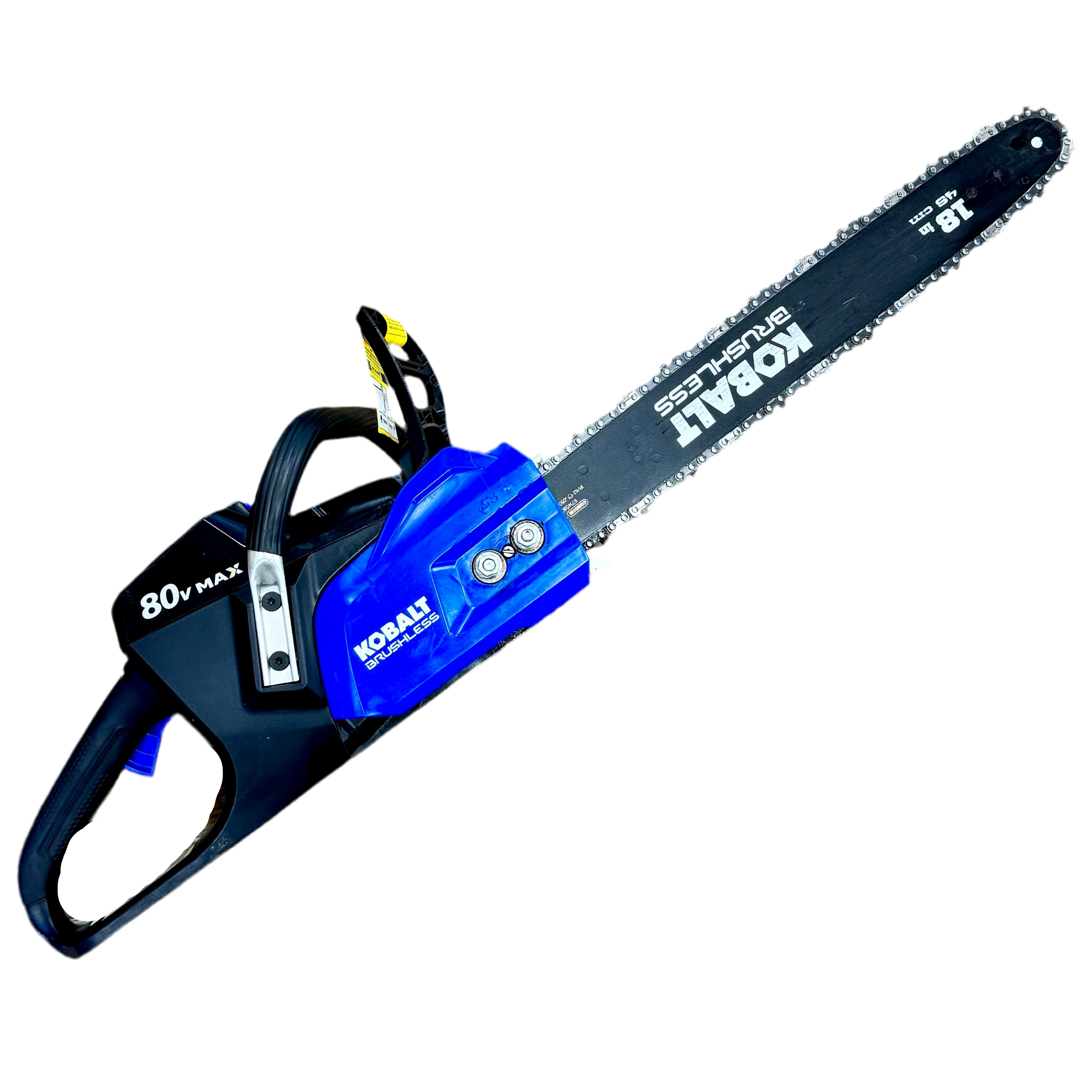 The Kobalt 80V MAX 18" Brushless Cordless Electric Chainsaw is a powerful and efficient tool designed for homeowners and professionals who need reliable cutting performance without the hassle of gas. Its brushless motor, cordless convenience, and included battery and charger make it ideal for a variety of cutting tasks.