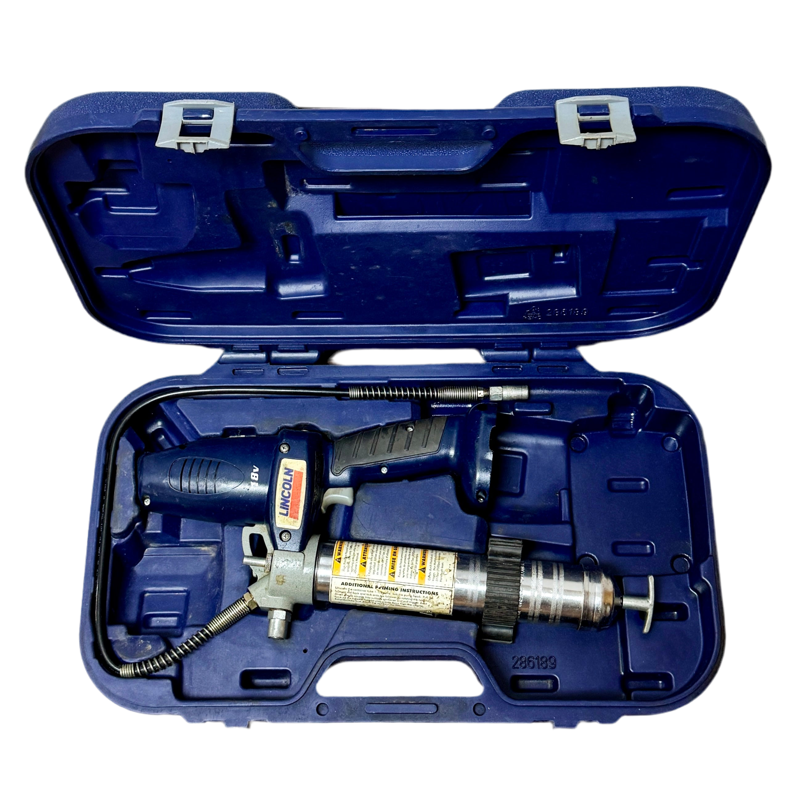 The LINCOLN 1800 PowerLuber 18V Cordless Grease Gun w/ Battery, Charger, & Hard Case is a convenient and powerful tool for efficiently applying grease in automotive, industrial, or farm maintenance tasks. Its cordless design and included accessories make lubrication quick and hassle-free.