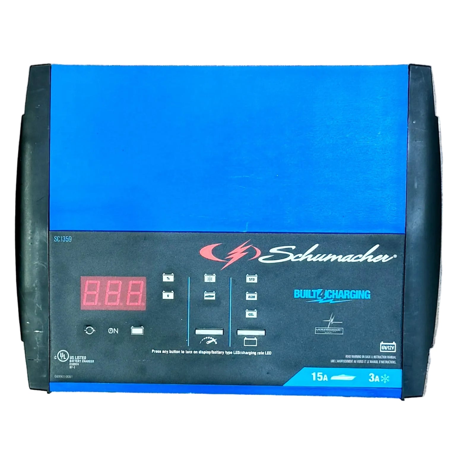 The Schumacher 15A 6V/12V Fully Automatic Rapid Battery Charger/Maintainer (SC1359) provides fast, reliable charging and maintenance for automotive, marine, and recreational batteries. Designed for ease of use, this charger automatically adjusts to battery needs to ensure safe and efficient operation.