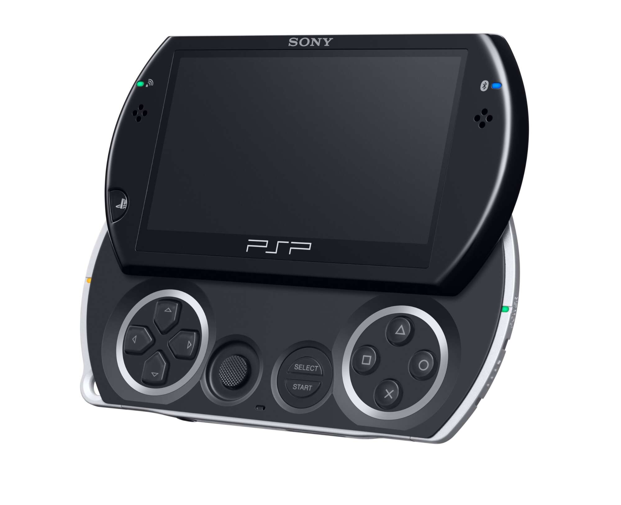 Experience portable gaming in a sleek, compact design with the Sony PSP Go in Piano Black. This digital-only handheld system features a slide-up control layout, built-in storage, and wireless connectivity, making it perfect for gaming on the go without the need for physical discs.