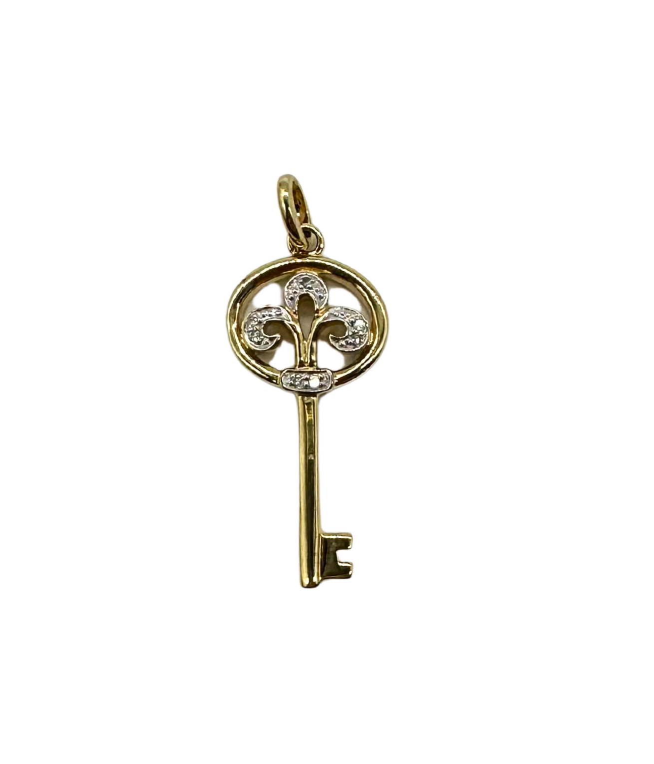 10k Yellow and White Gold Fleur-de-Lis Key Pendant