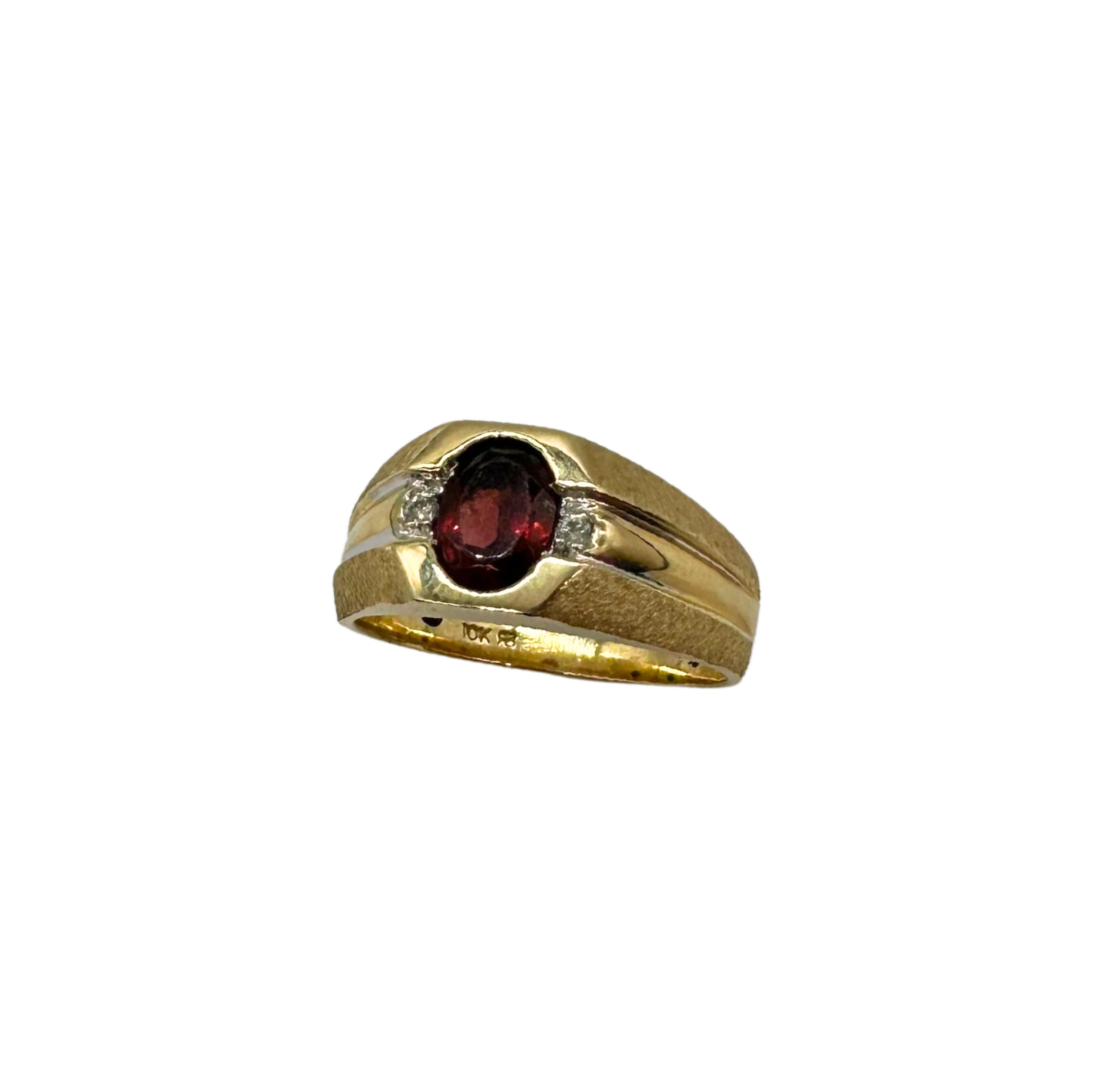 10k Yellow and White Gold Garnet Ring with Diamond Accent