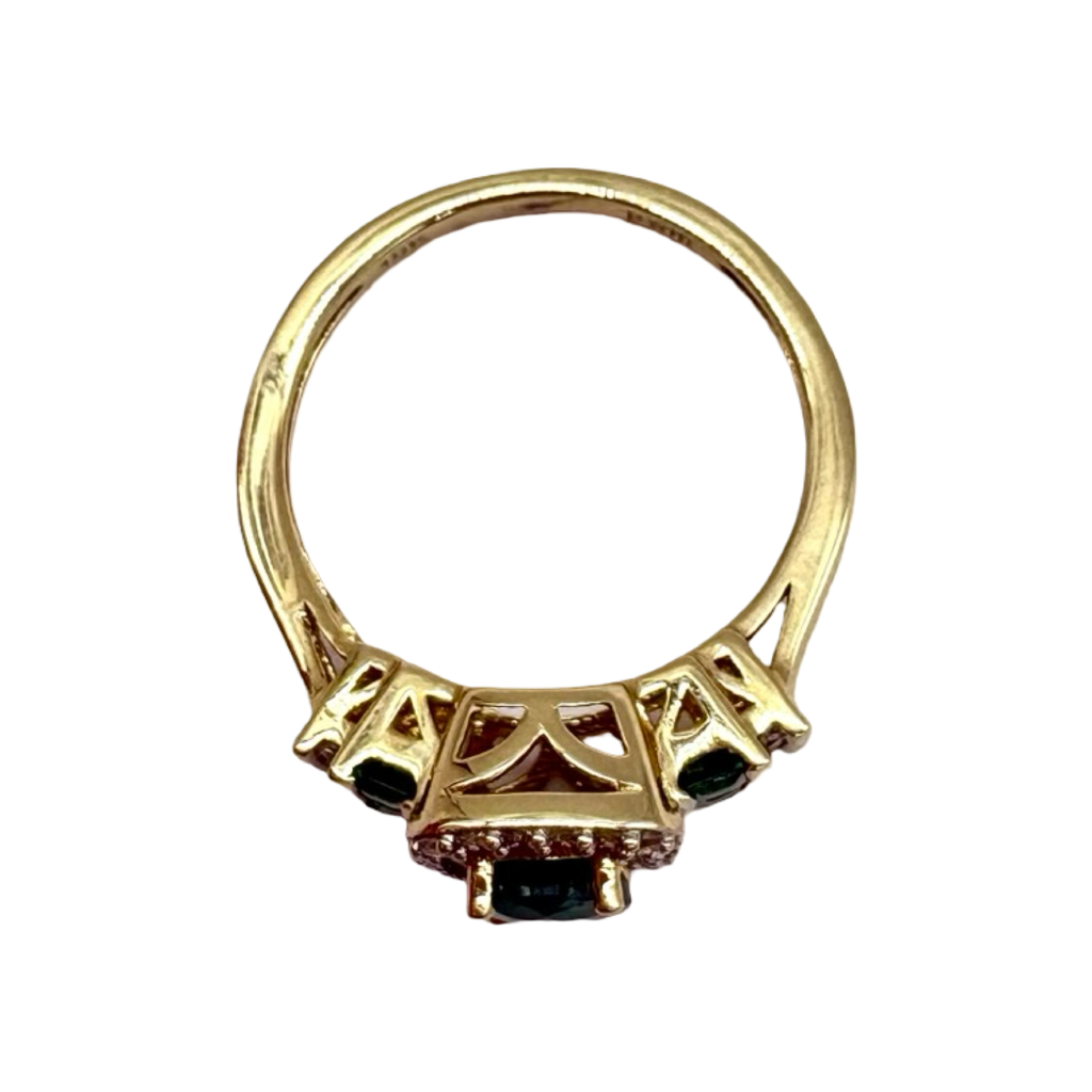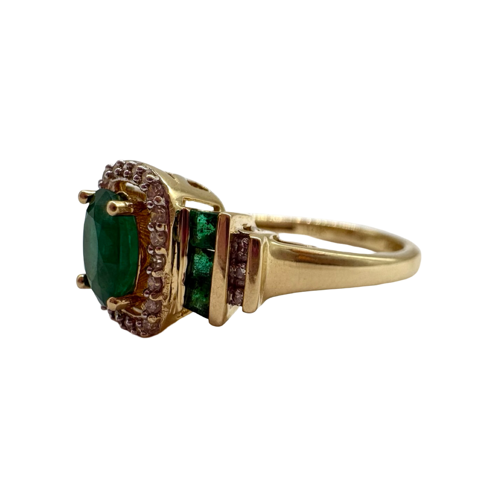 10K Yellow Gold 1/5CTW Diamond Emerald Channel Halo Ring