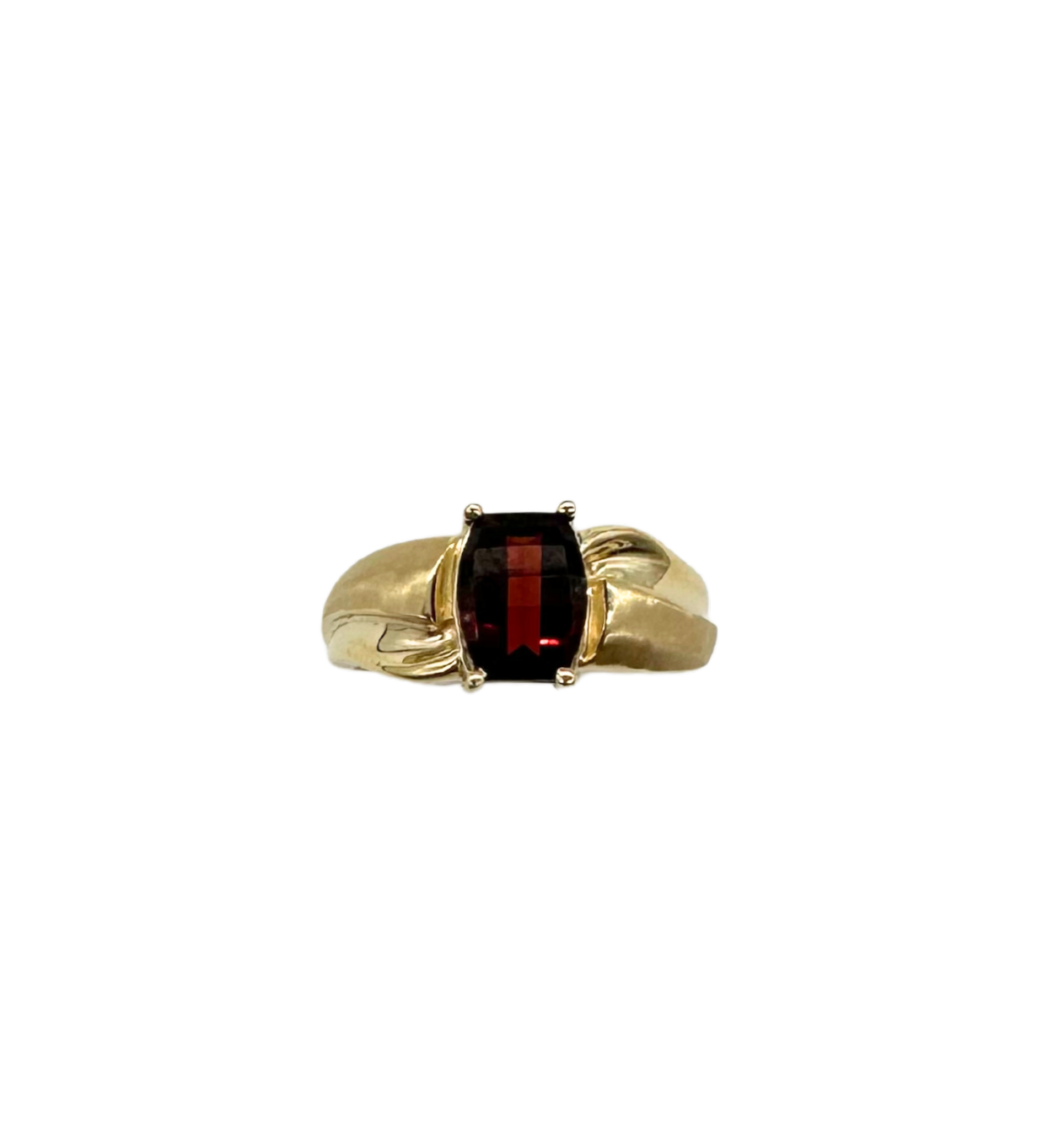 10k Yellow Gold Garnet Ring – Rectangular Faceted Cut