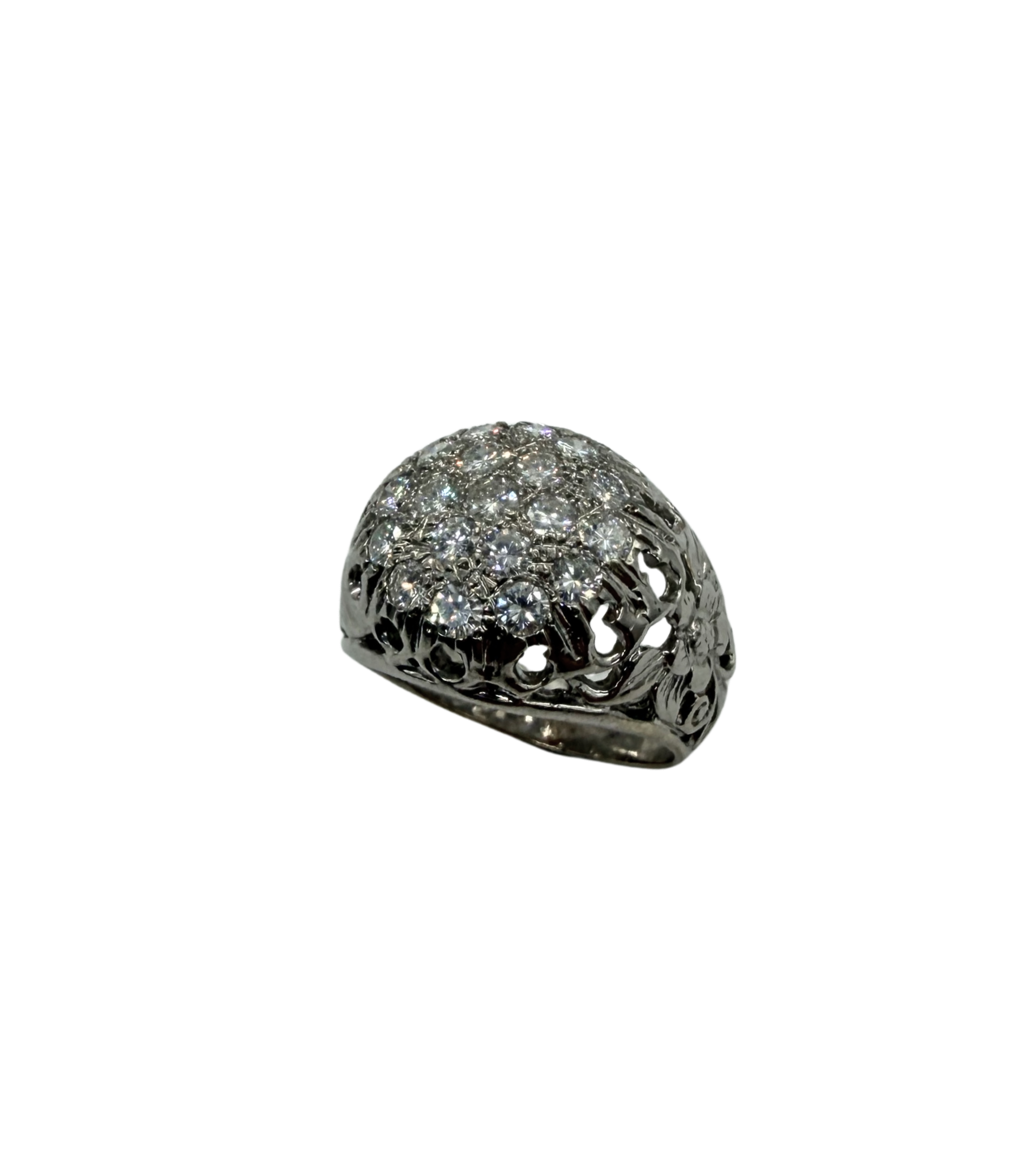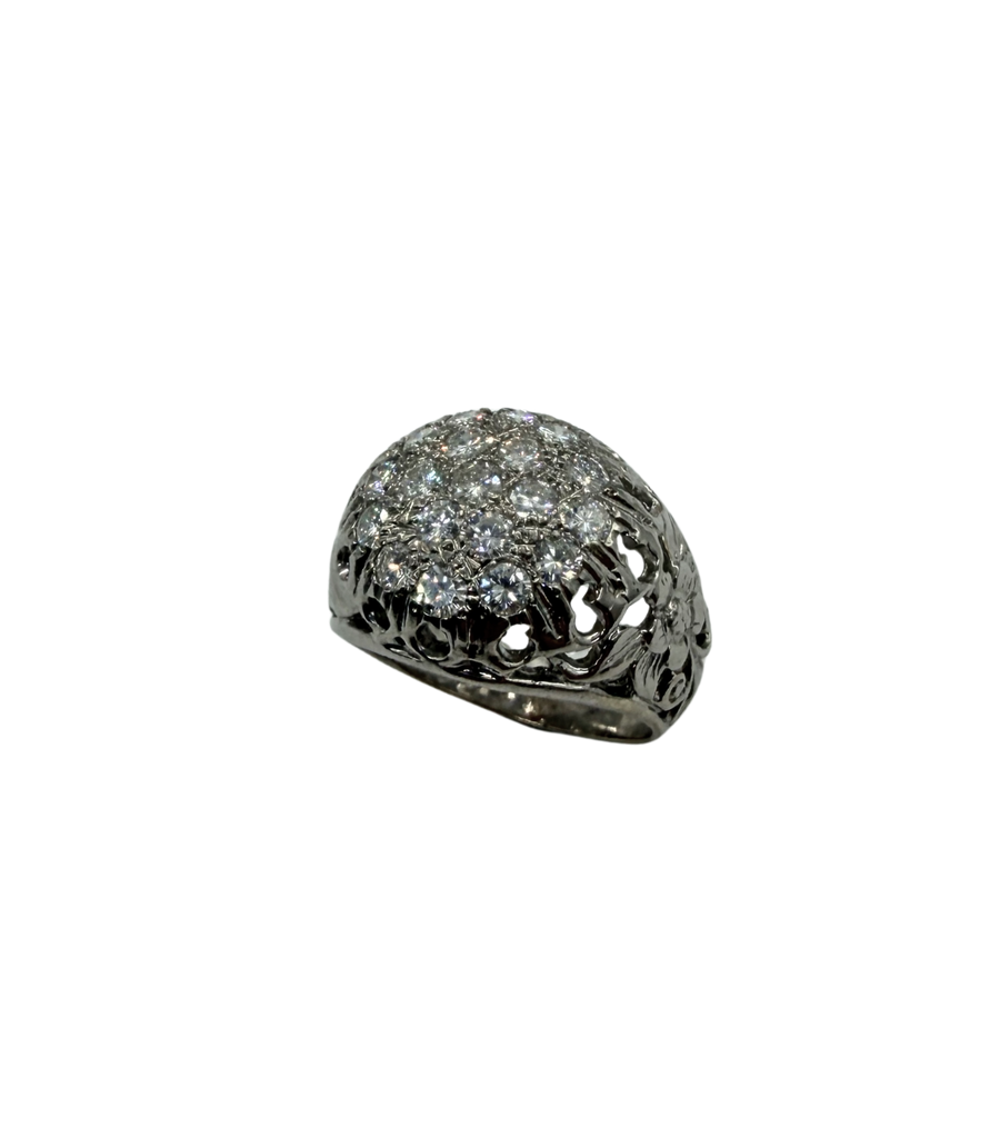 14k White Gold 2 ctw Diamond Cluster Cutout Gents Ring
