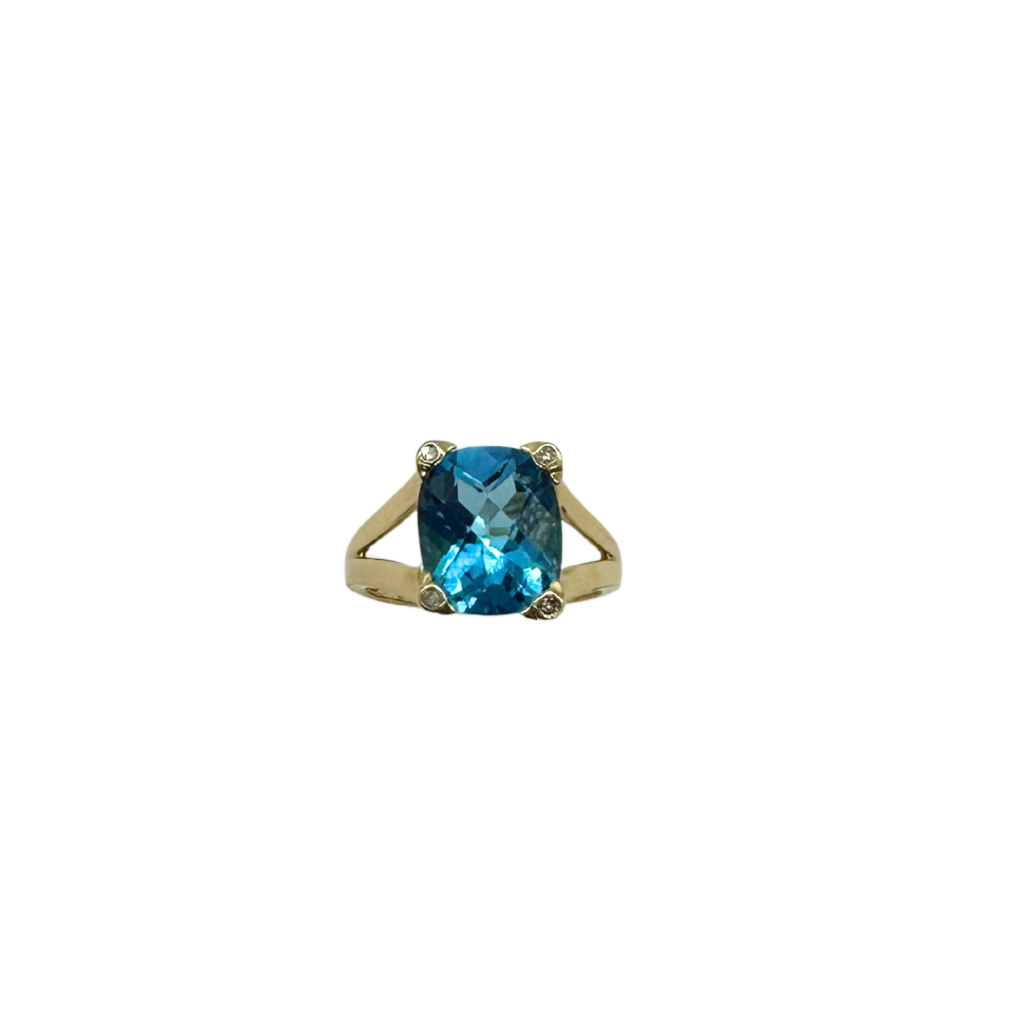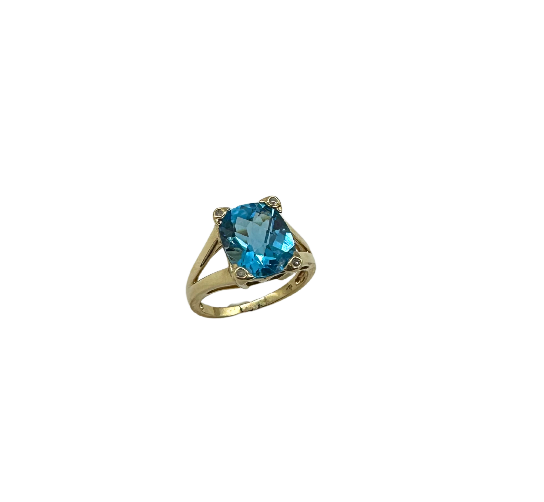 14k Yellow Gold Faceted Blue Topaz Ring with Diamond Accents