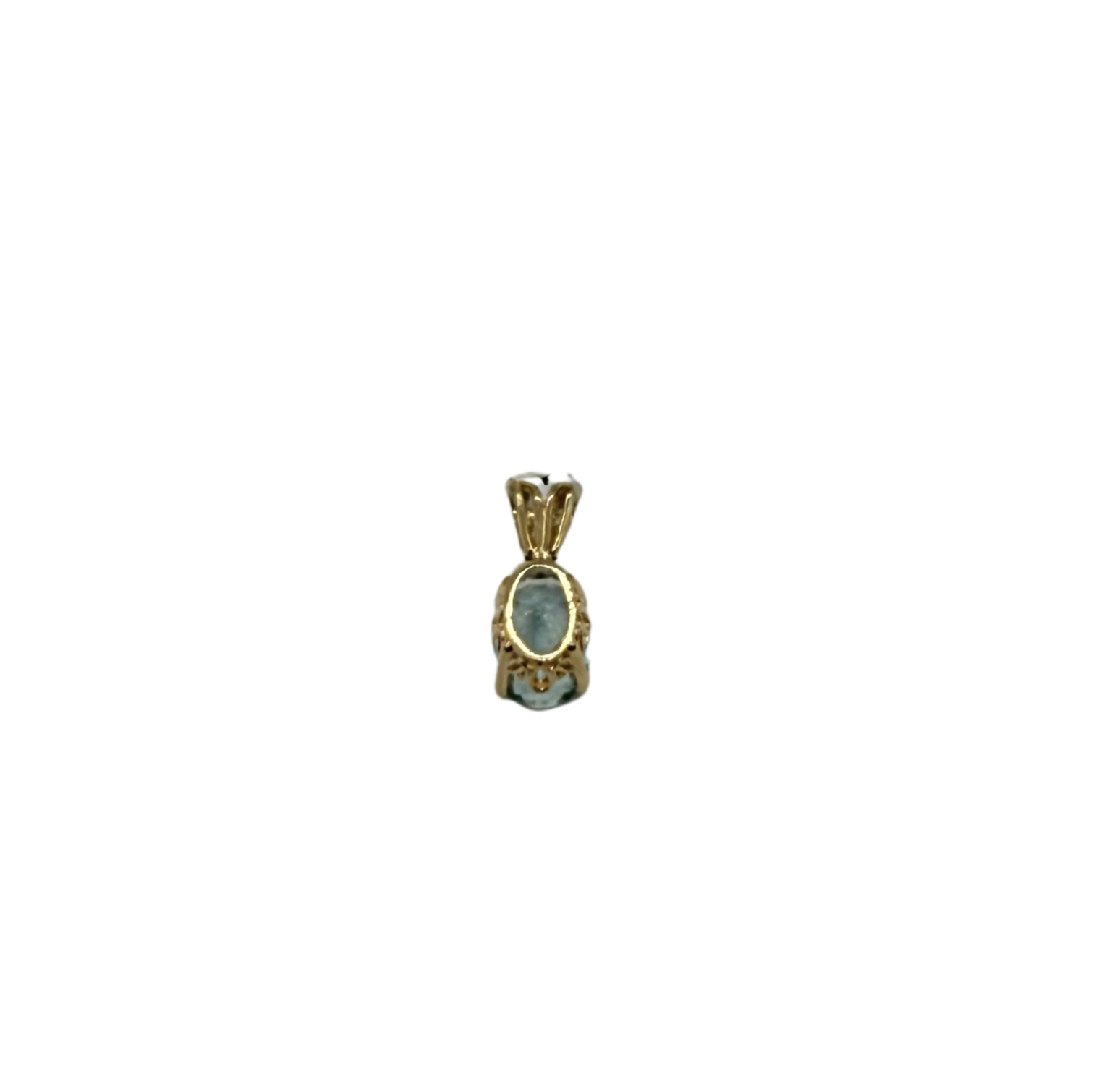 14k Yellow Gold Oval Aquamarine Solitaire Basket Set Pendant