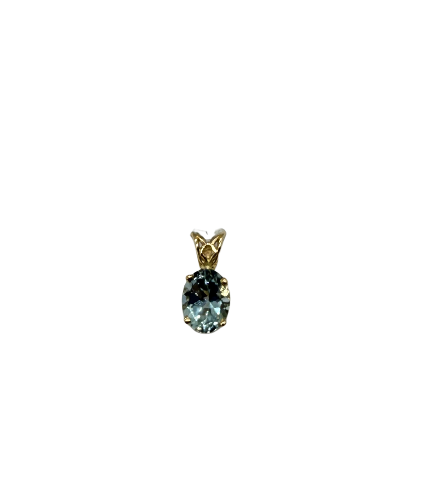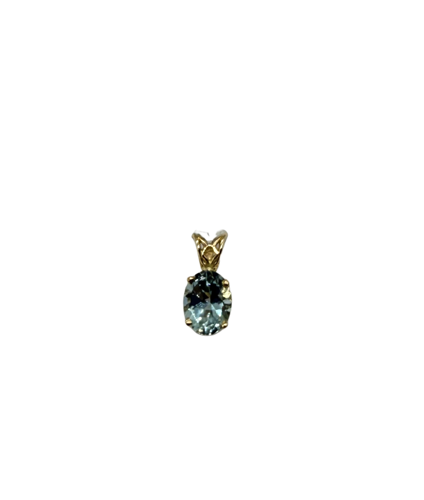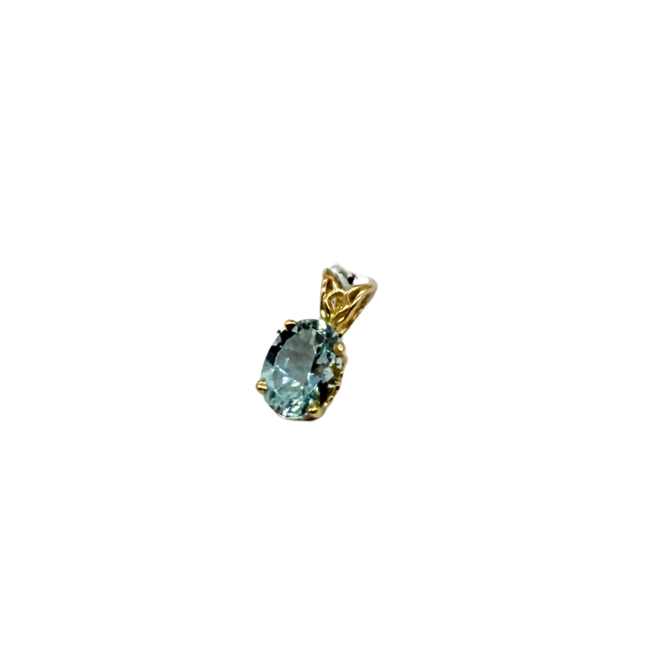 A soft, ocean-blue oval aquamarine sits gracefully in a classic 14k yellow gold basket setting, creating a pendant that feels airy, elegant, and effortless to wear.