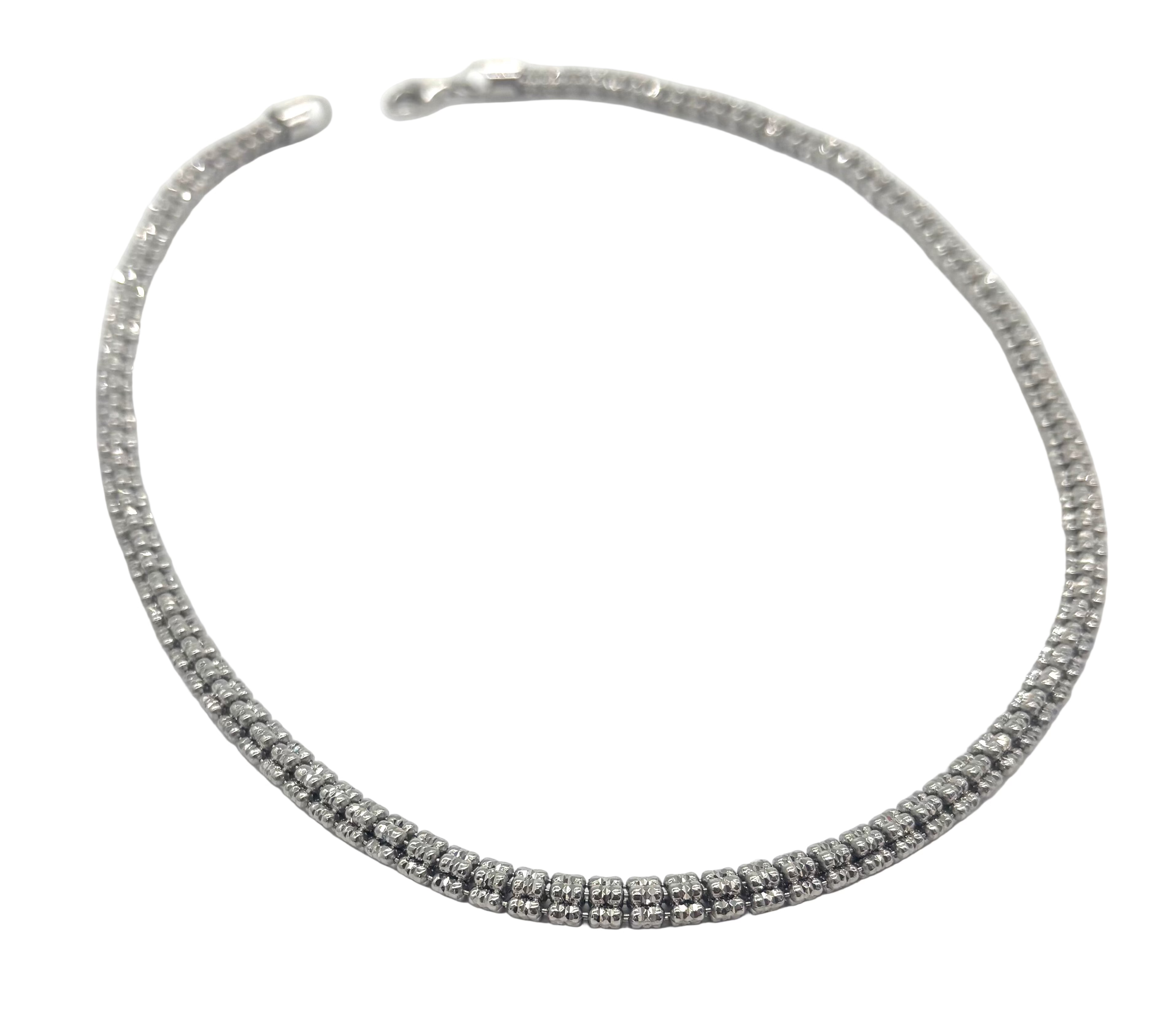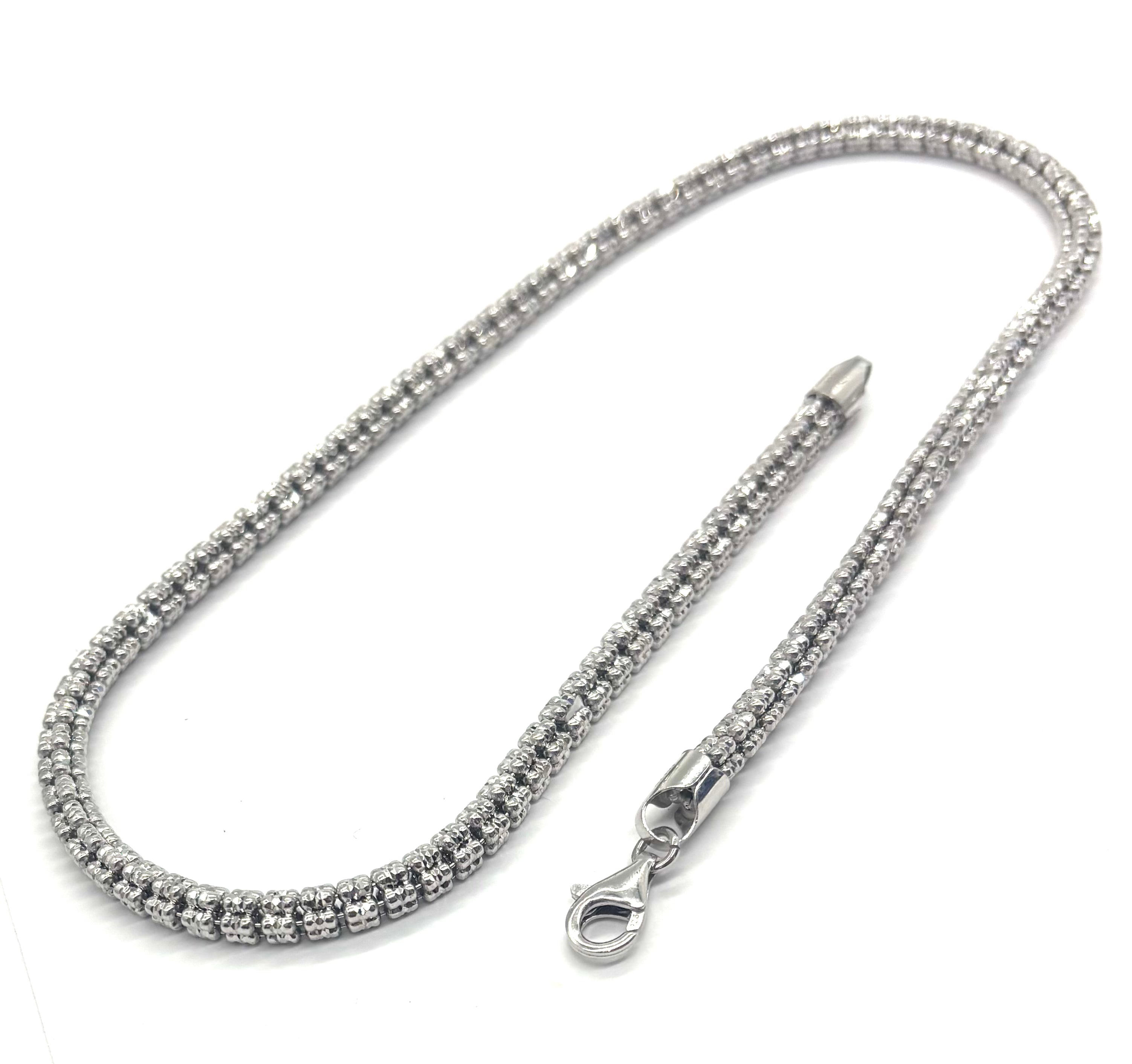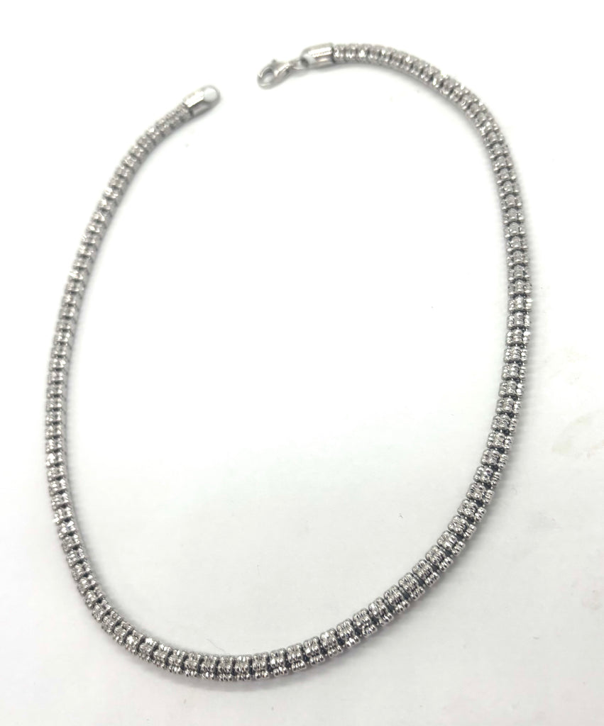 Elevate your look with this bold and timeless .925 Sterling Silver Ice Bead Necklace. Featuring diamond-cut 5mm beads, this piece sparkles beautifully as it catches the light, adding just the right touch of shine to any outfit.