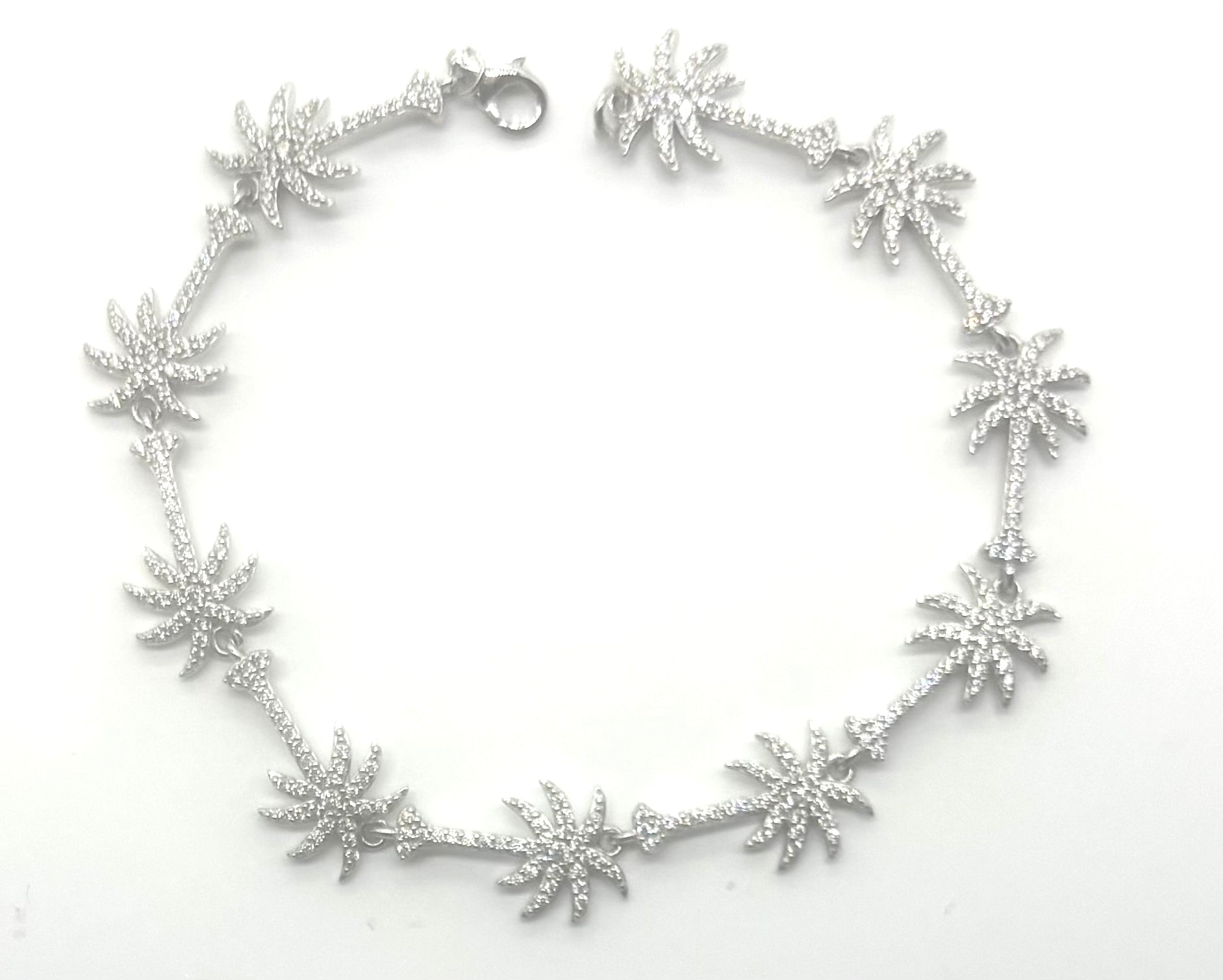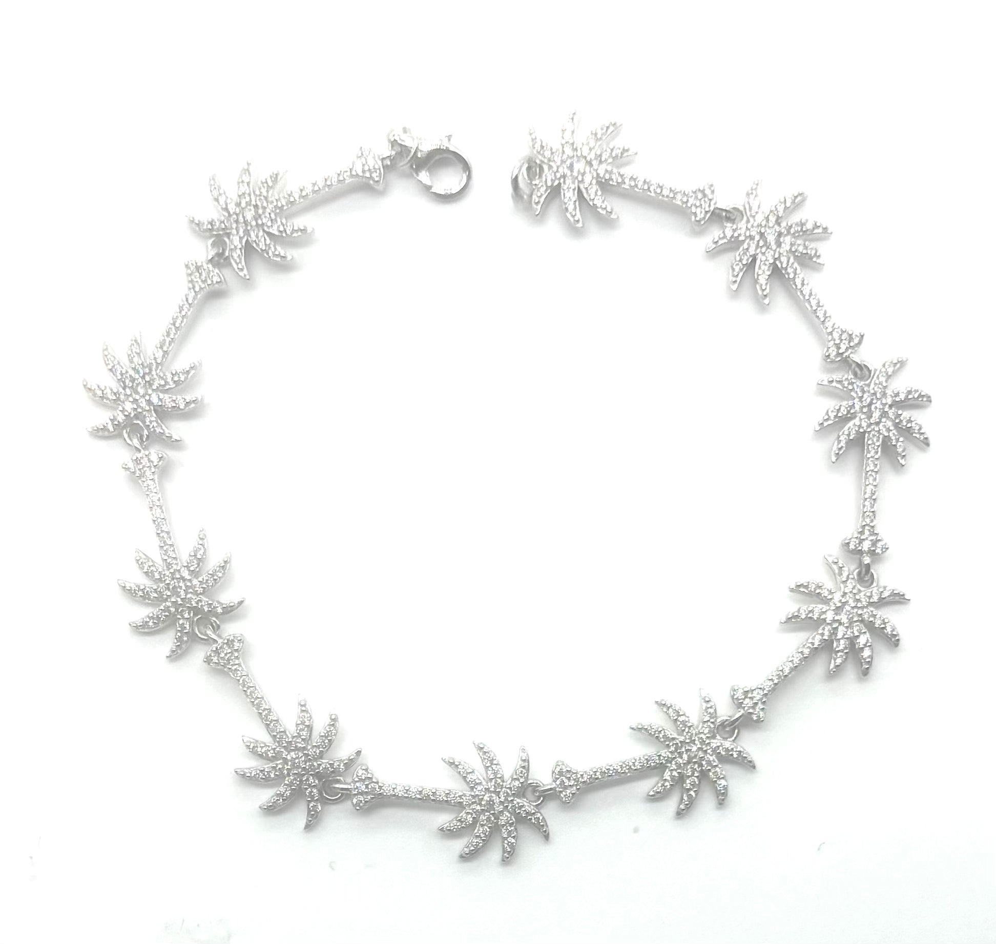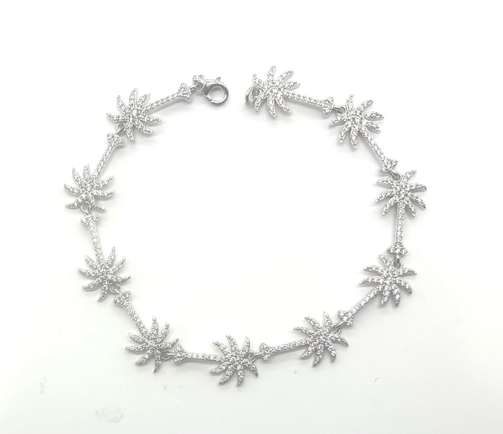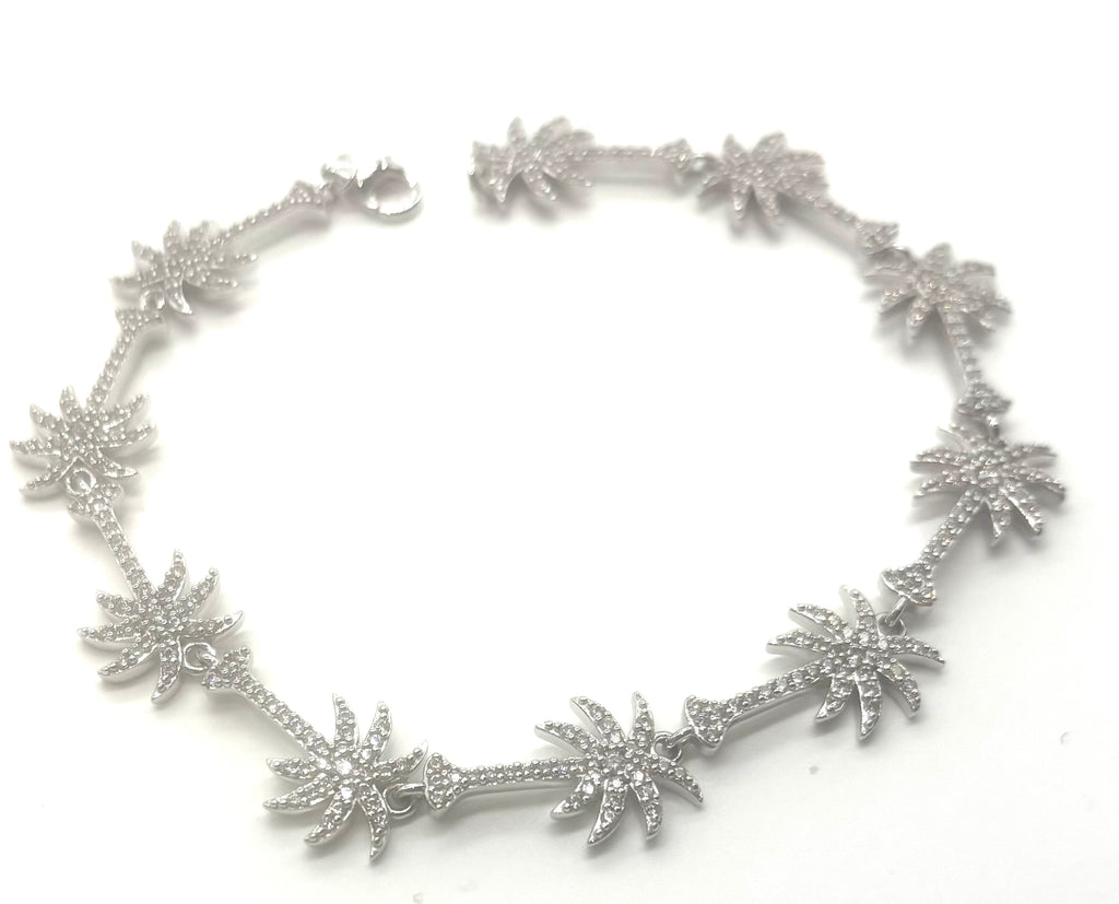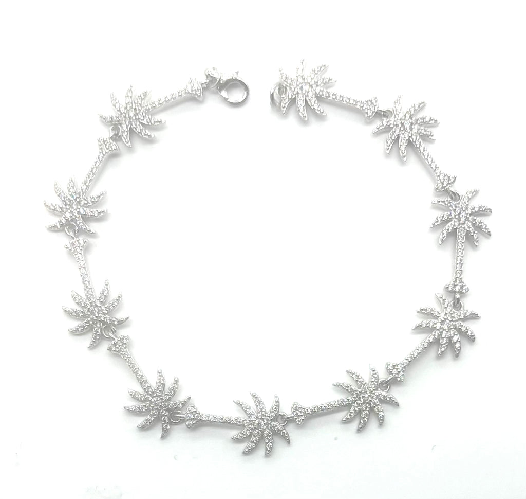 Palm Tree Link Bracelet – 925 Sterling Silver with Cubic Zirconia (7")