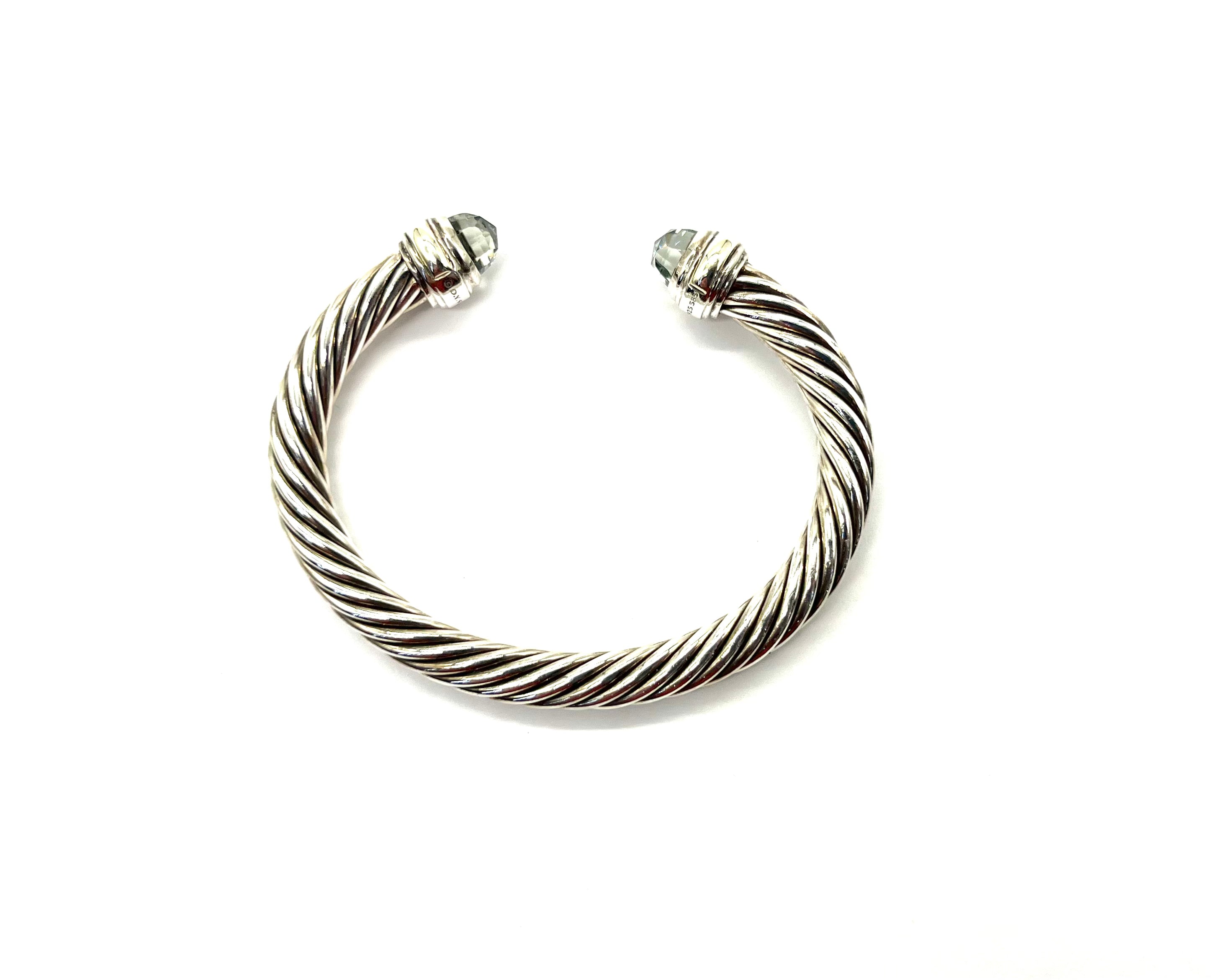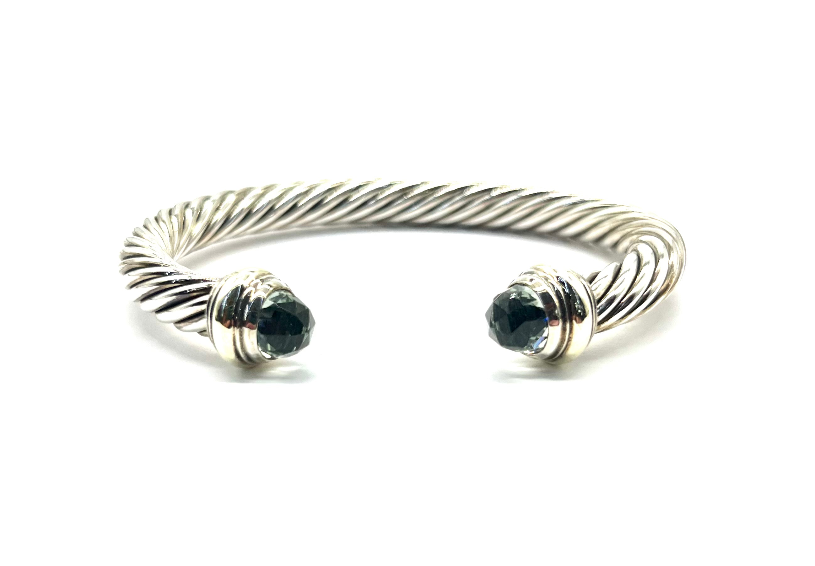 David Yurman Sterling Silver Cuff Bracelet with Green Quartz