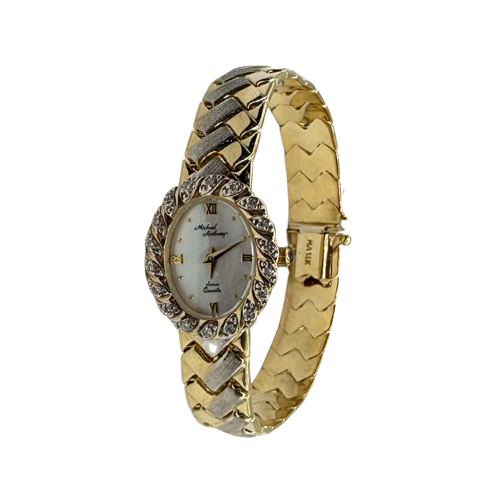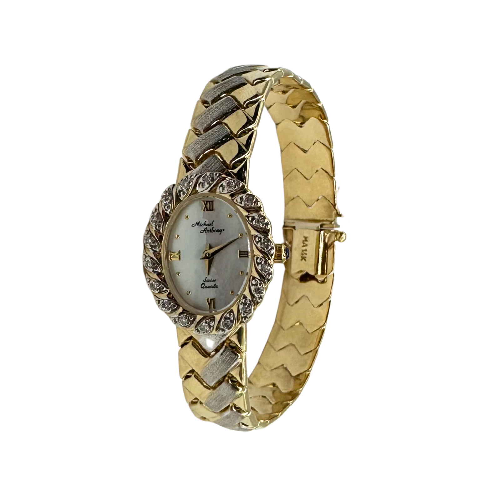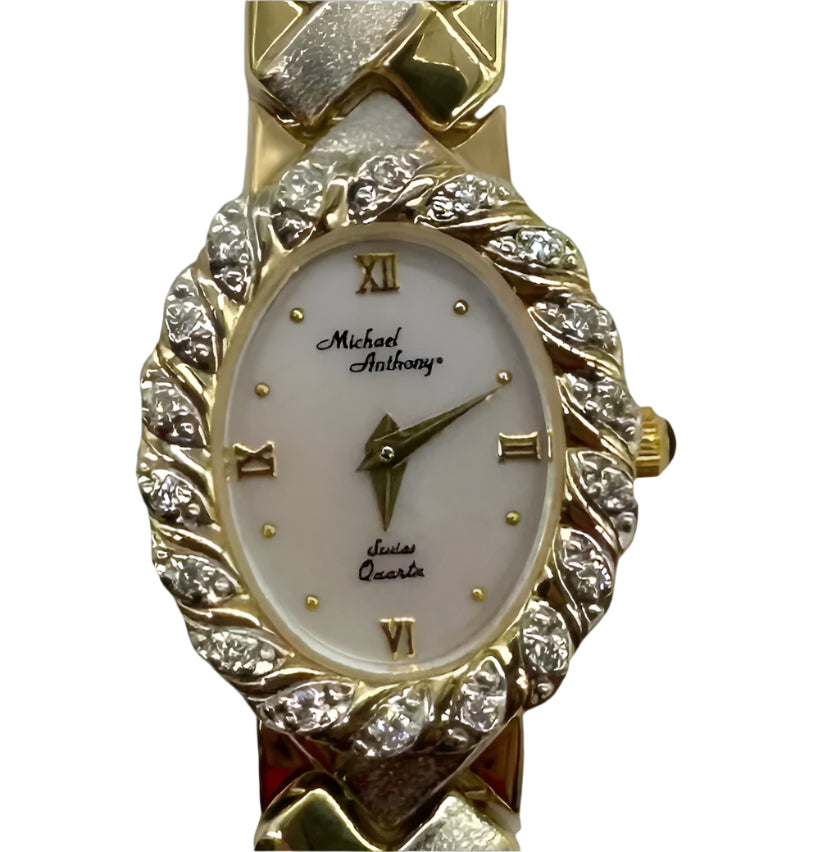 Michael Anthony 14K Gold Diamond Bezel Watch – Swiss Quartz