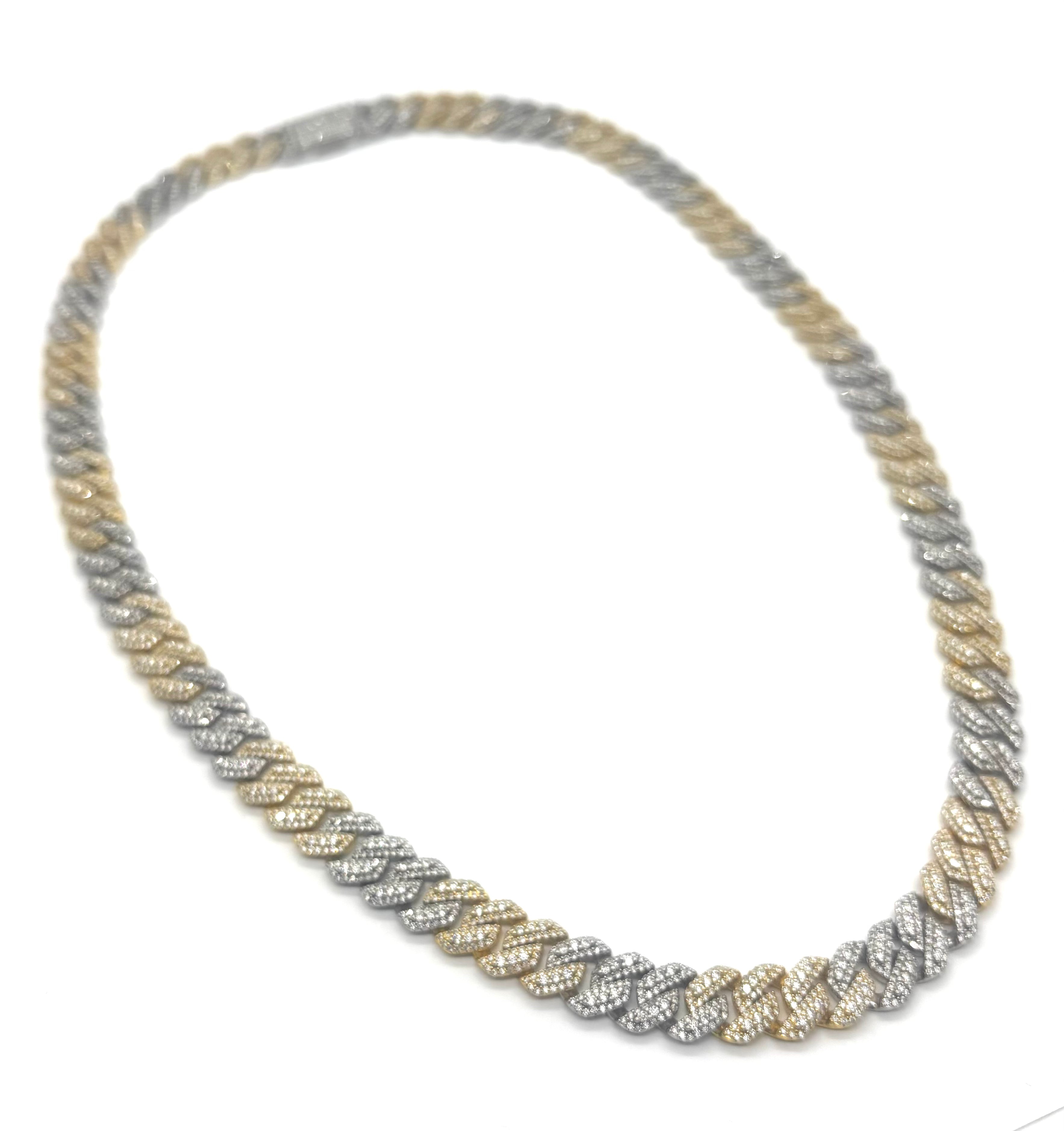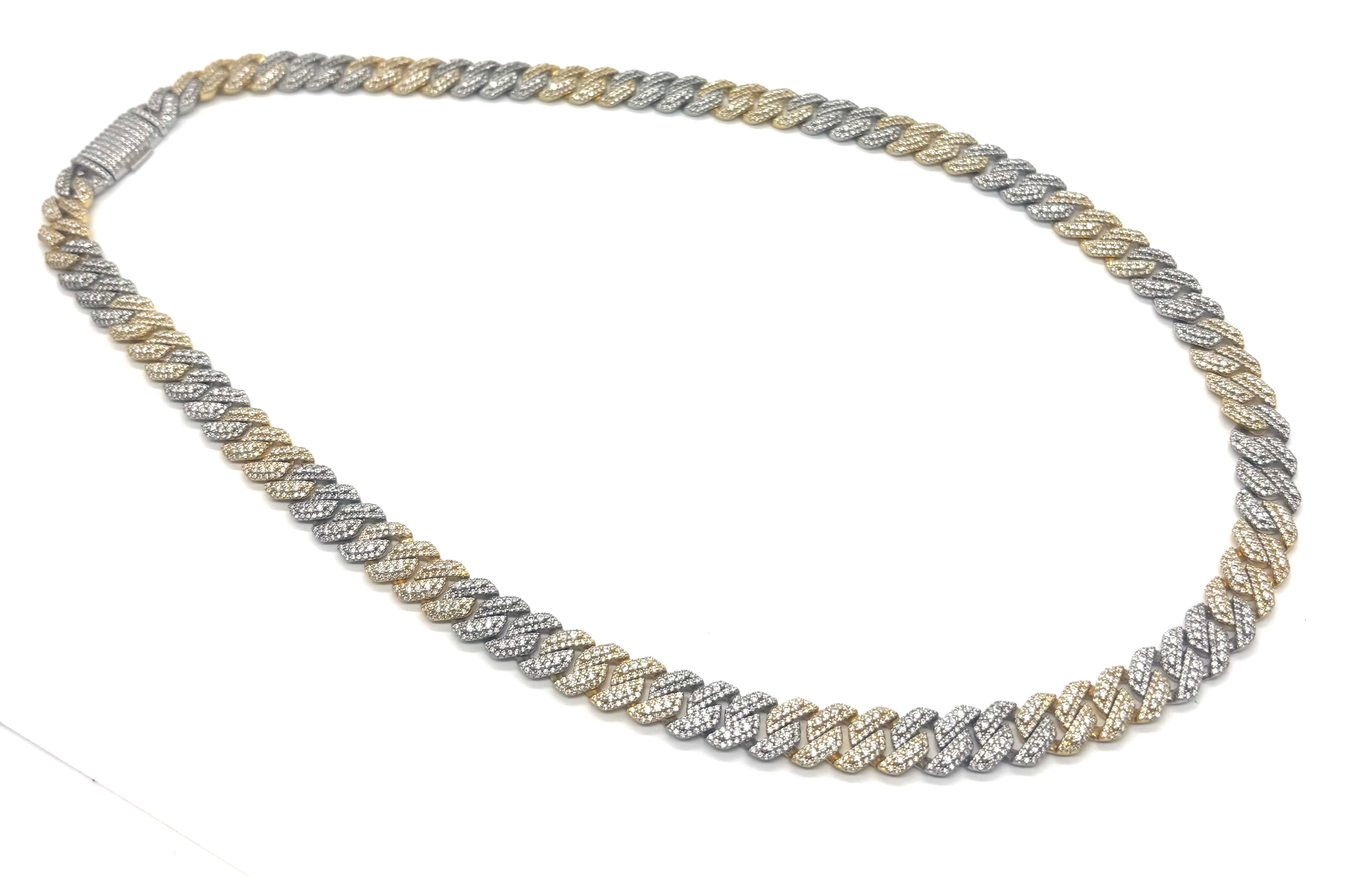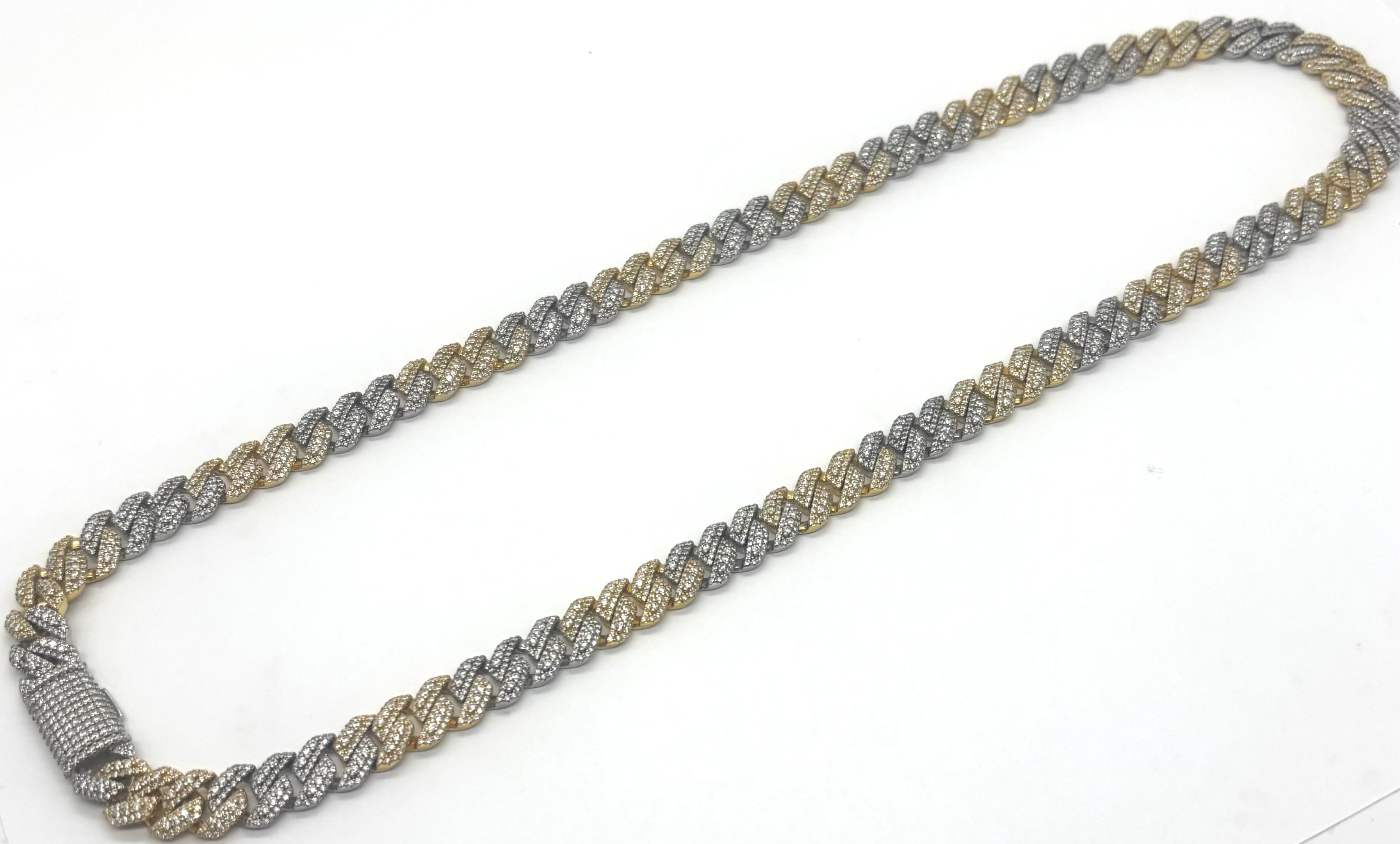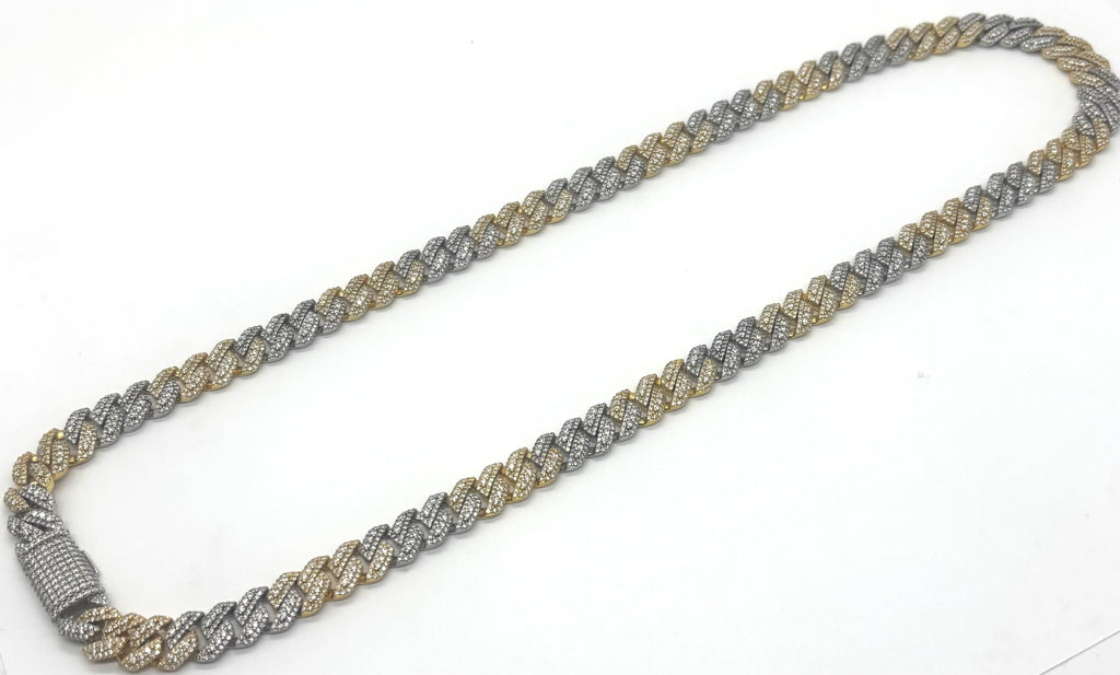 Two-Tone 925 Sterling Silver & Gold Plated Cuban Link Necklace – 22” | 16ctw Moissanite | 84.3g
